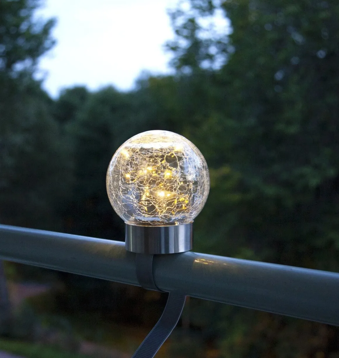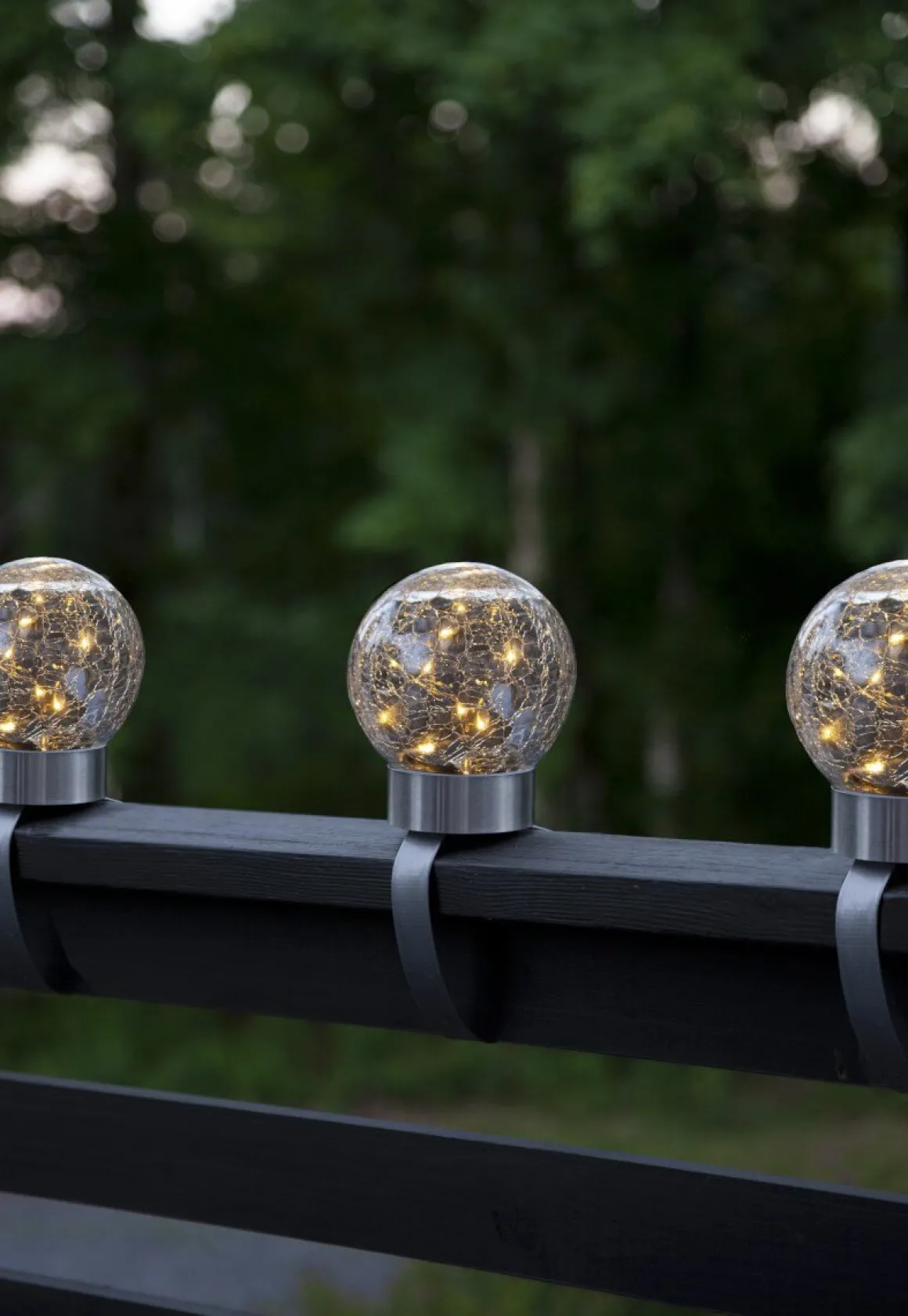 Glory glory glory 2018 års stora kundfavorit kommer här i en trestegs variant, inte nog att den krackelerade glaslyktan lyser fantastiskt bra nu kan du använda den på tre sätt. På räcke, på bord eller som mini pollare. Remmarna som medföljer för att fästa den runt ett räcke går givetvis att plocka bort.