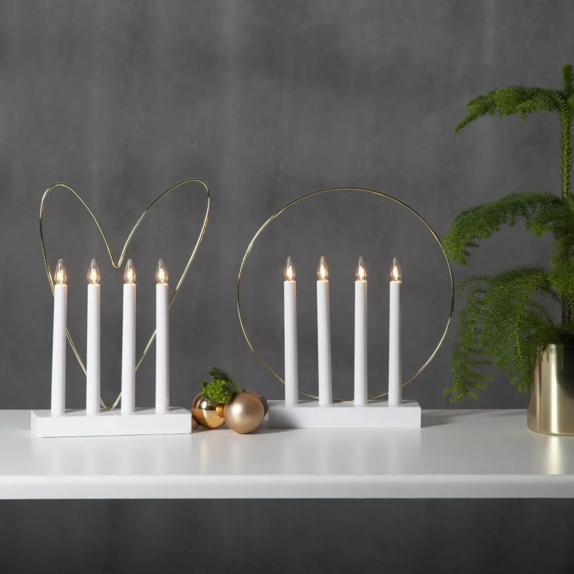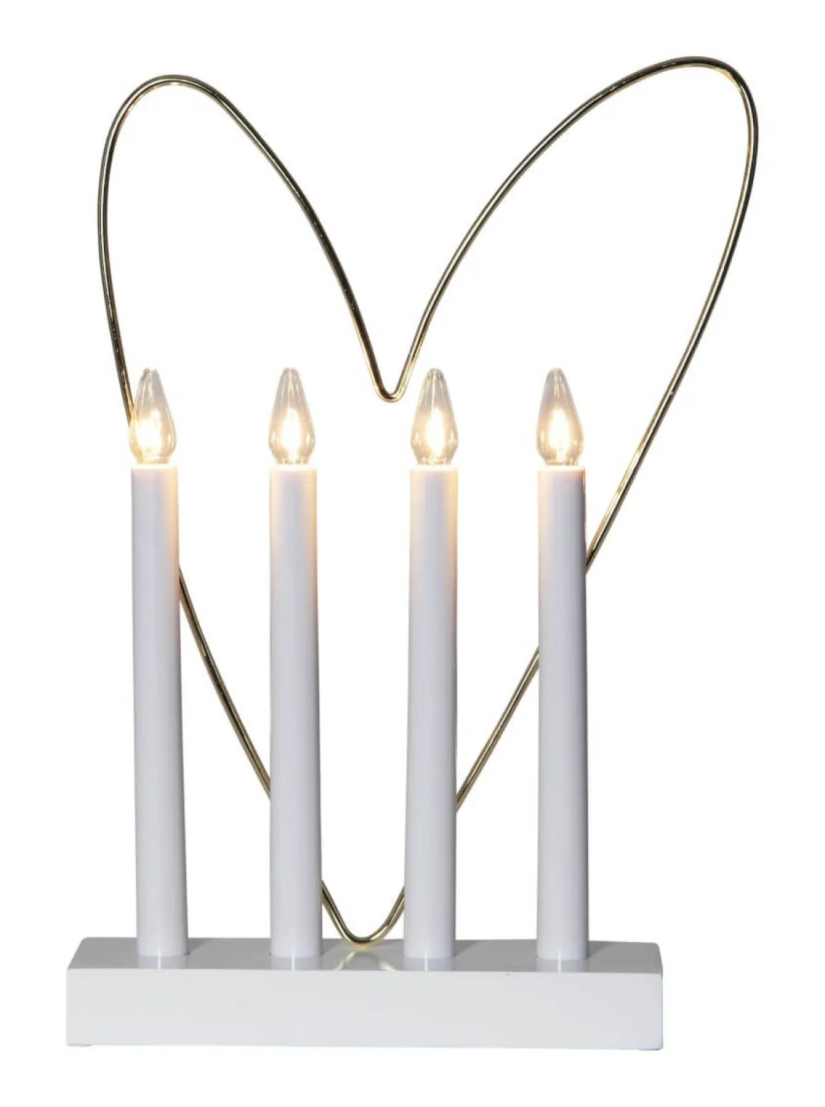 Så vacker liten ljusstake i vitt med ett dekorativt mässingshjärta som ger den det där lilla extra, en stor favorit julen 2019!