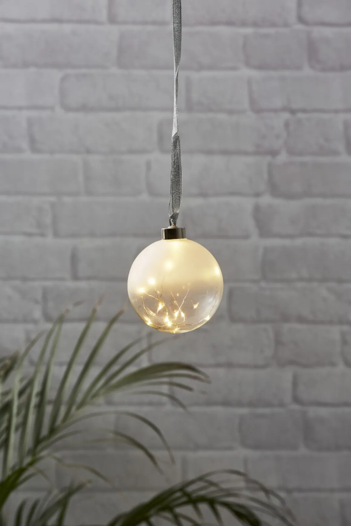 Ett nytillskott till den populära Glow serien är denna vackra lilla glaskula med hälften frostat och hälften klarglas med den vackra dewdrop slingan i mitten som ger ett fantastiskt fint och varmt sken. Drivs gör den med batteri och givetvis har den en inbyggd timer.