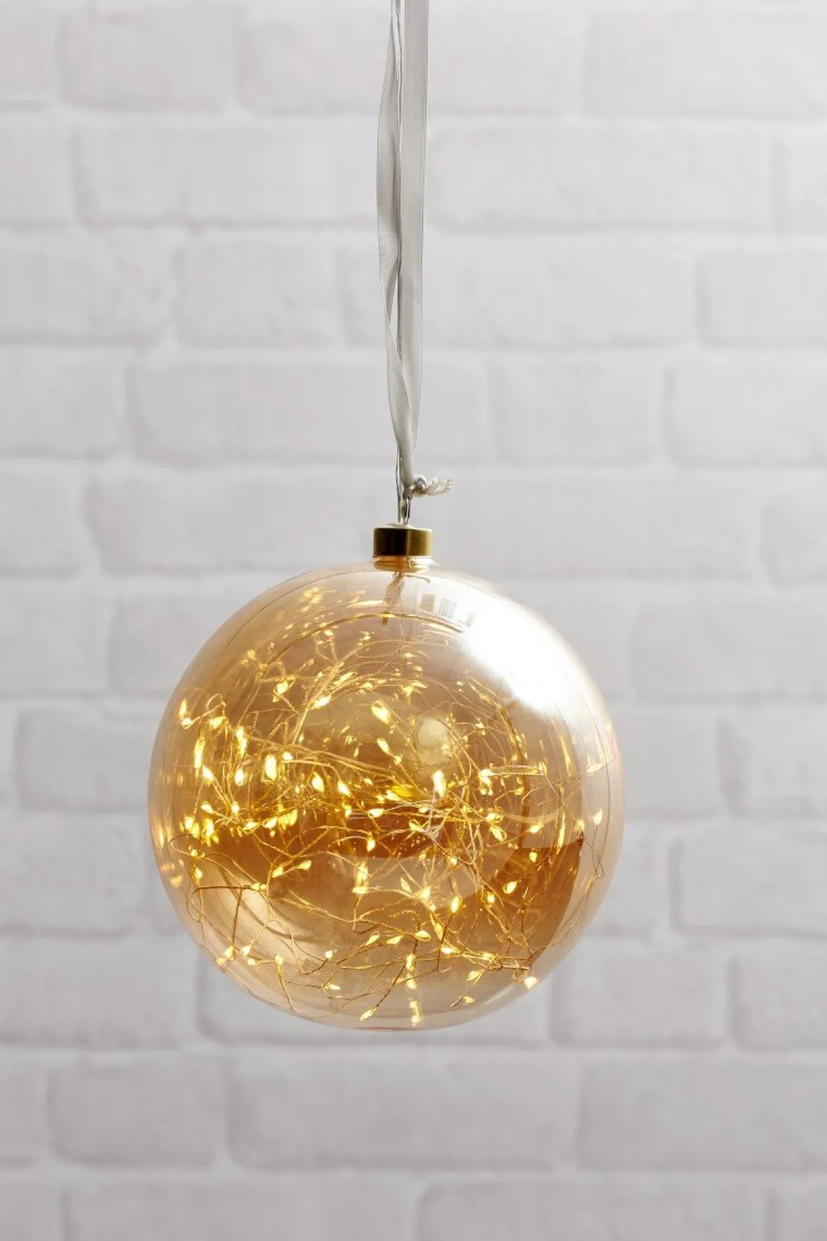 Amberfärgad glaskula med den fina slingan dewdrop med hela 80 lampor i, ger ett vackert varmvitt sken och passar i alla fönster, så lysande vacker!
