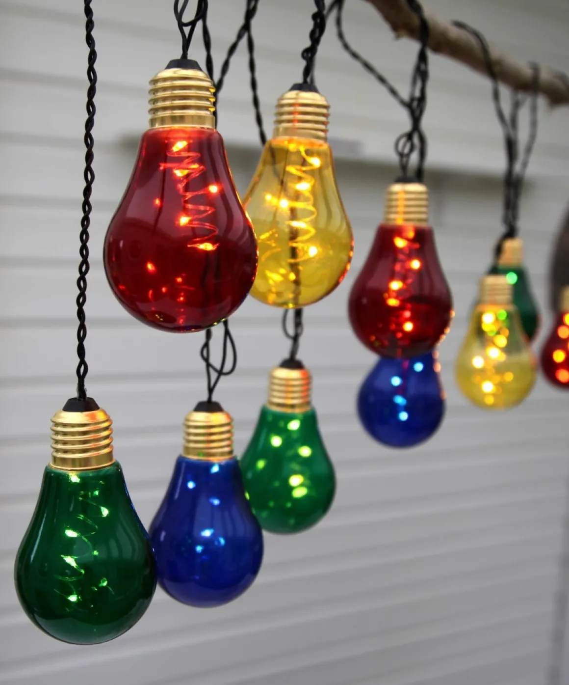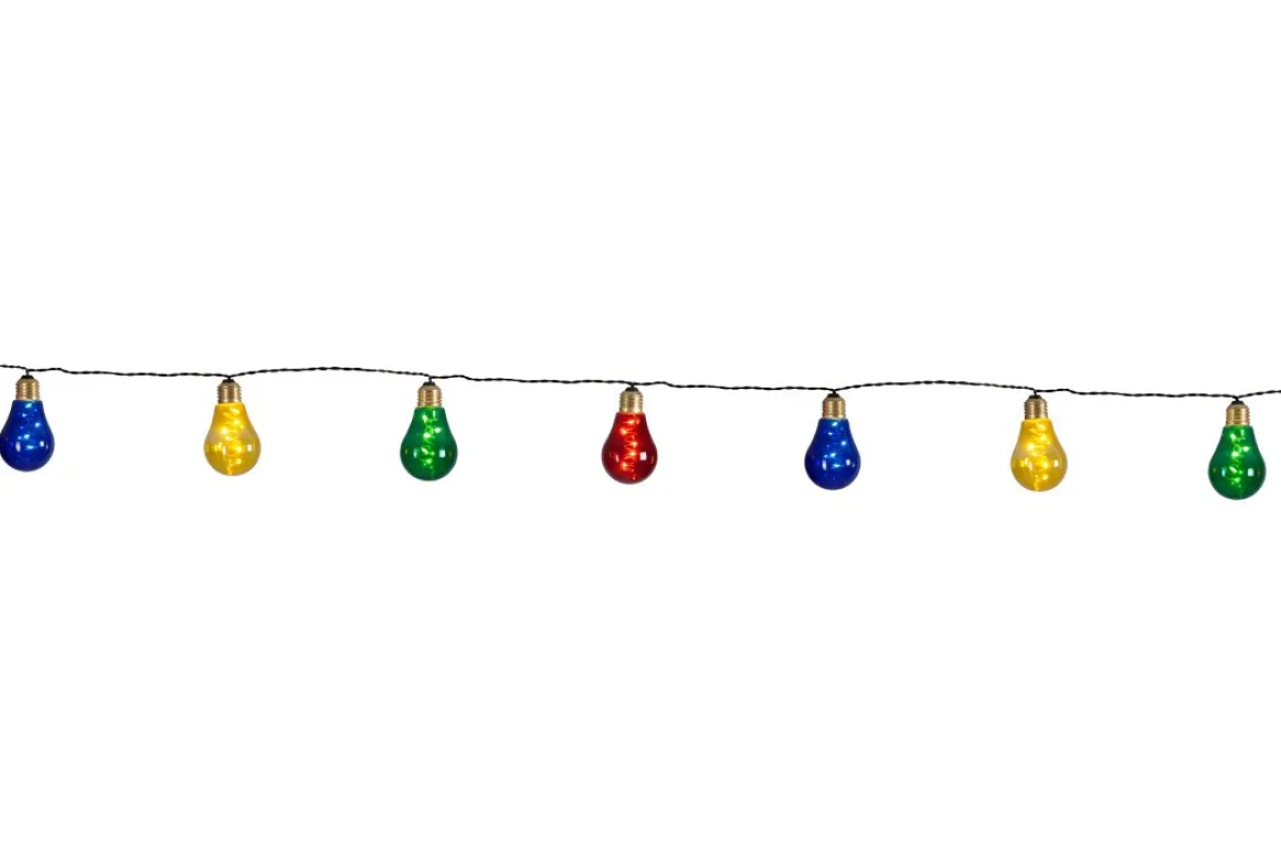 Som vi älskar denna dekorationsslinga, 10 stycken små lyktor i glas med formen av en glödlampa med en liten slinga i varje ”glödlampa” lyser vackert upp varthän du än placerar den! Den går fint att ha utomhus men då helst under tak.