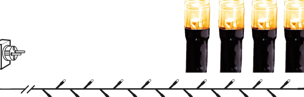 Slinga med 80 LED lampor med vackert gyllene ljussken från star trading. Slingan är ca 5,5 meter lång med ett avstånd på 7cm mellan lamporna. Perfekt för din trädgård eller mindre julgran.