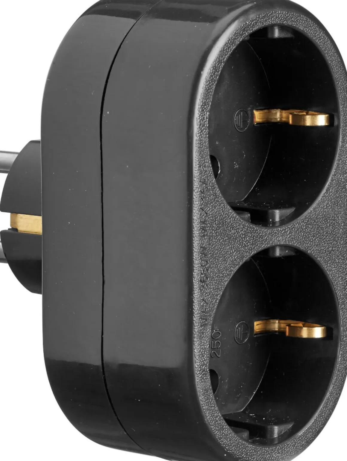 Jordat svart 2 vägs dubbeluttag från PR-Home.