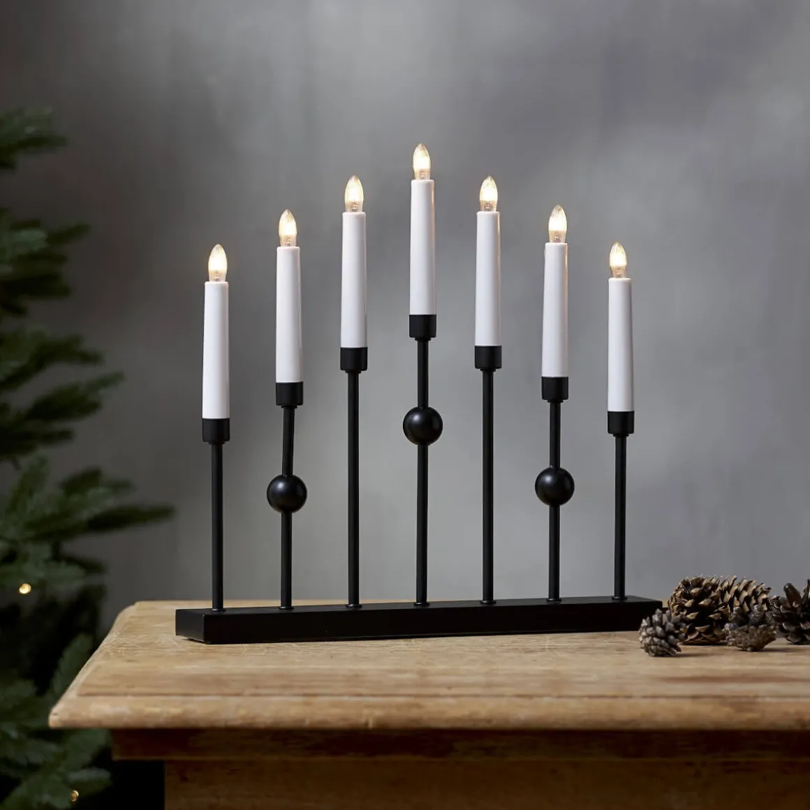 En läcker modern och stilren metalljustake i Svart från Star Tradingmed 7 ljuskällor som ger den ett mysigt sken. Perfekt för dig som vill ha en klassisk ljusstake i modern stil.