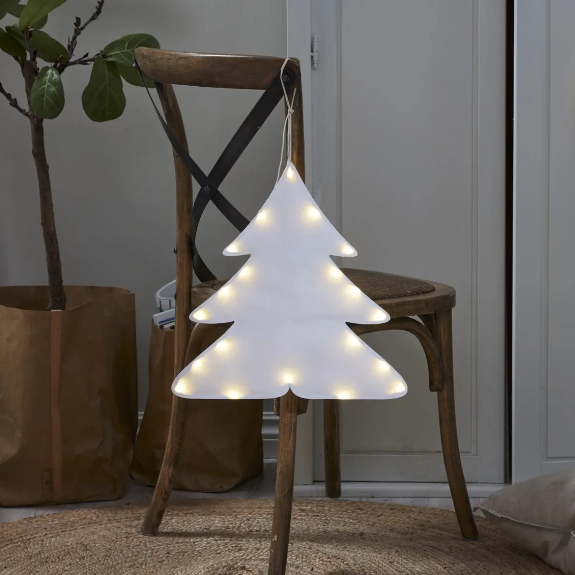 Skapa julmagi med Milla Pappersgran från Star Trading! Denna stilrena gran i lätt vadderat papper lyser dubbelsidigt med små varmvita LED-punkter för mysig stämning. Häng i fönster, mot dörr eller spegel – perfekt för alla rum! Batteridriven med timer för enkel vardagsglädje. En tidlös dekoration för advent, jul eller året runt!