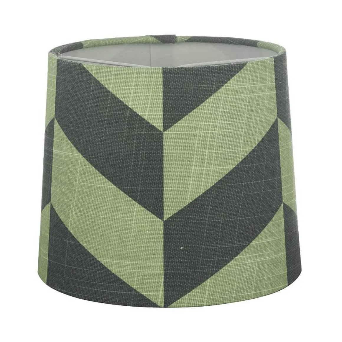 Herringbone lampskärm från Oriva i härligt mönstrat Linne tyg. Här ser du lilla Herringbone i grönt 16 cm.