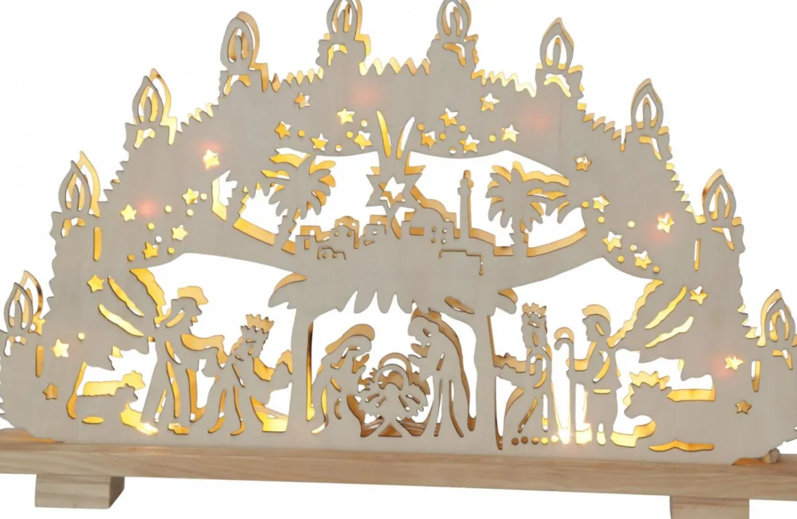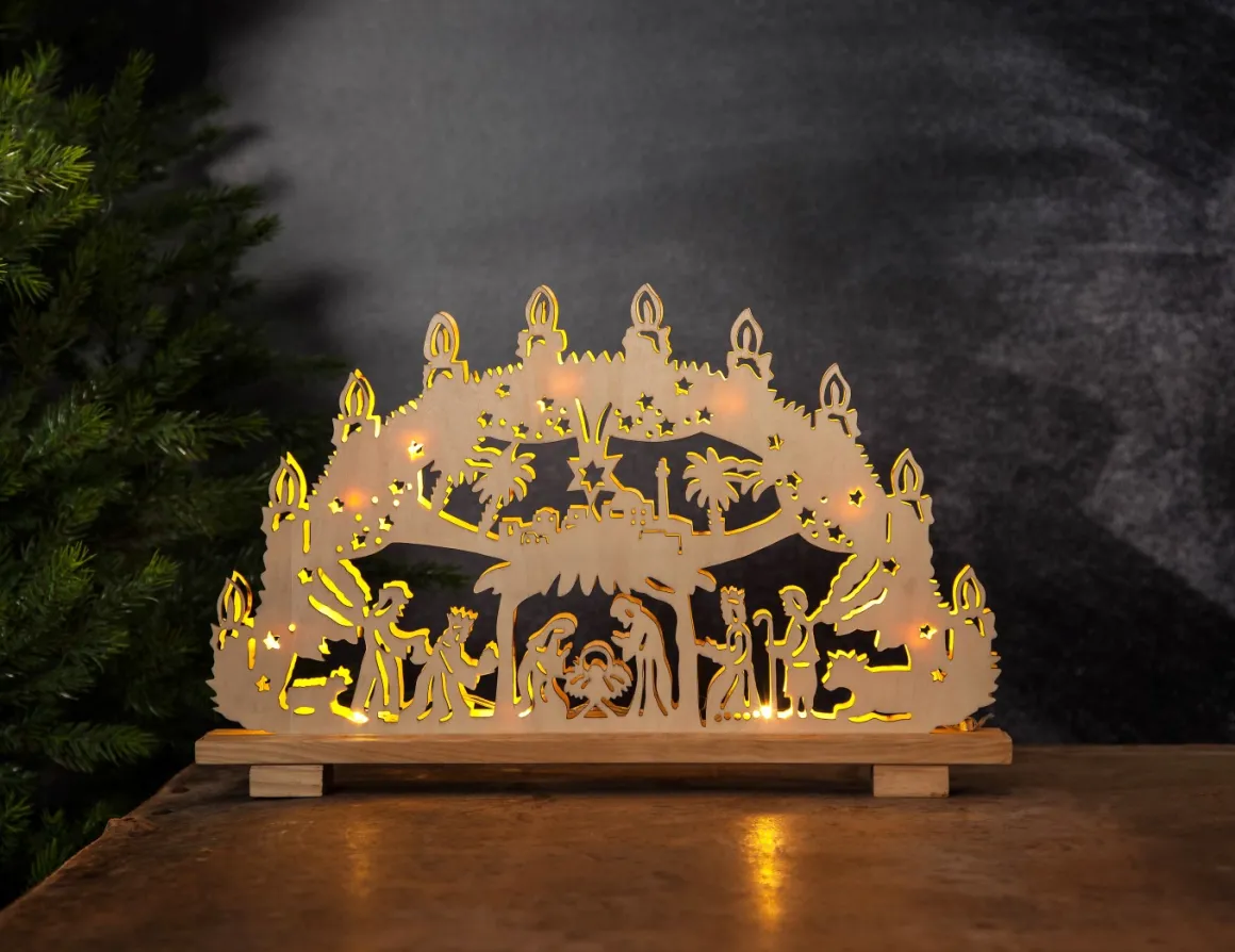 Naturfärgad laserskuren ljustake med härligt motiv, skapar garanterat julstämning! 10 varmvita lampor lyser vackert upp i rummet