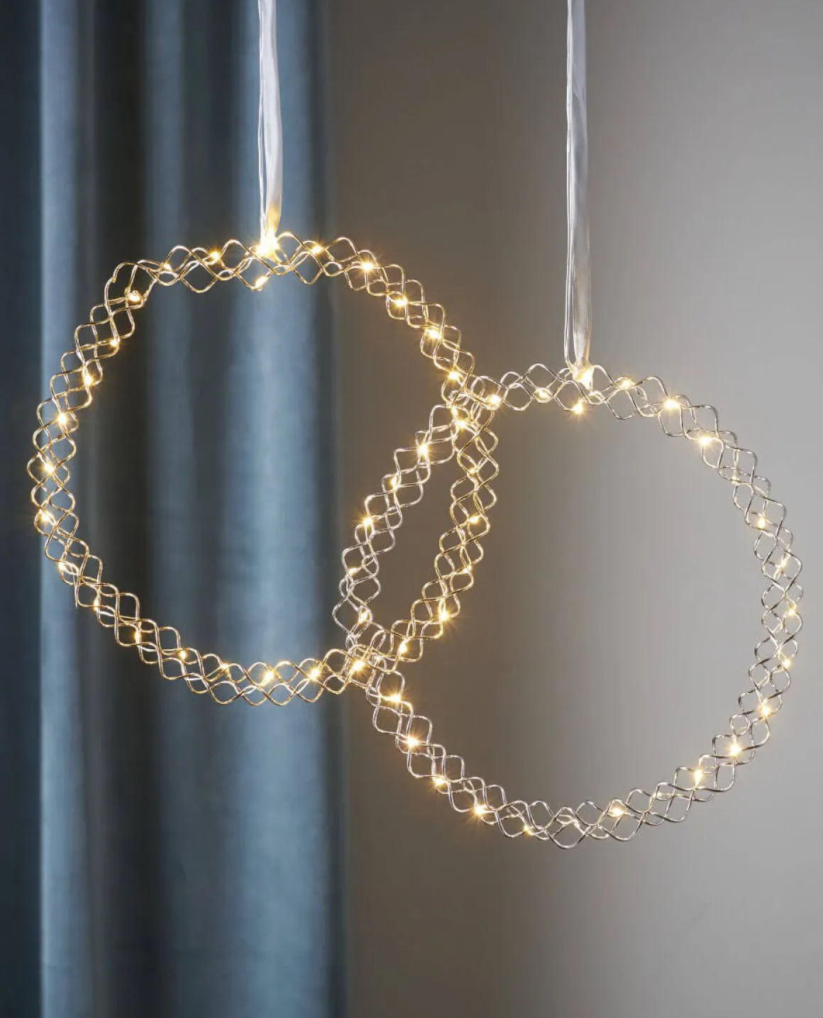 Metallkrans i krom från star trading med en dekorativ dew drops slinga. Batteridriven och givetvis med timer funktion.