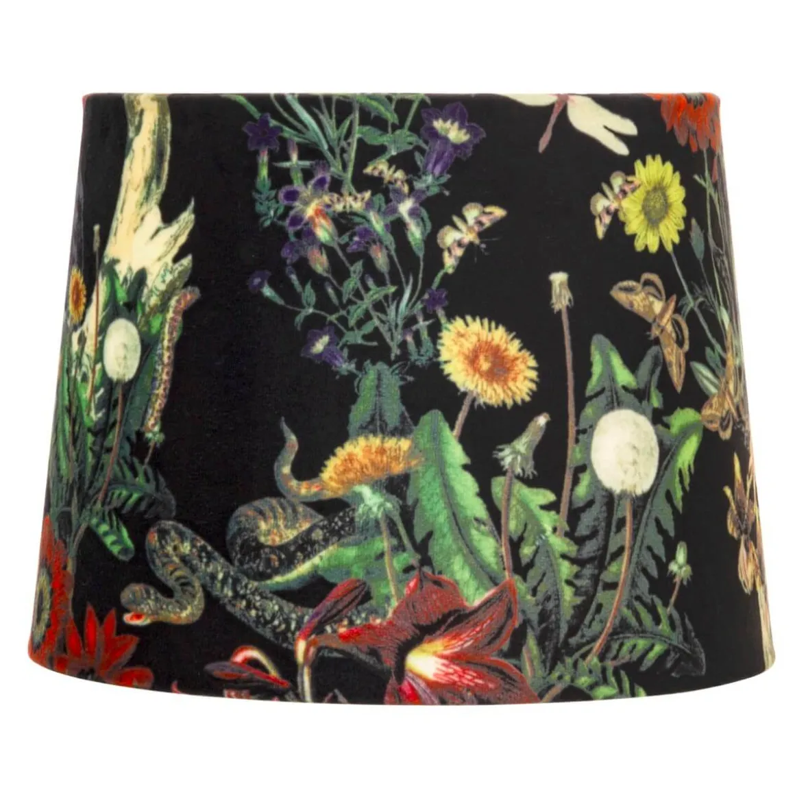 Härligt mönstrad skärm från Aneta med bas i svart sammet. 30 cm i diameter med ringfäste.