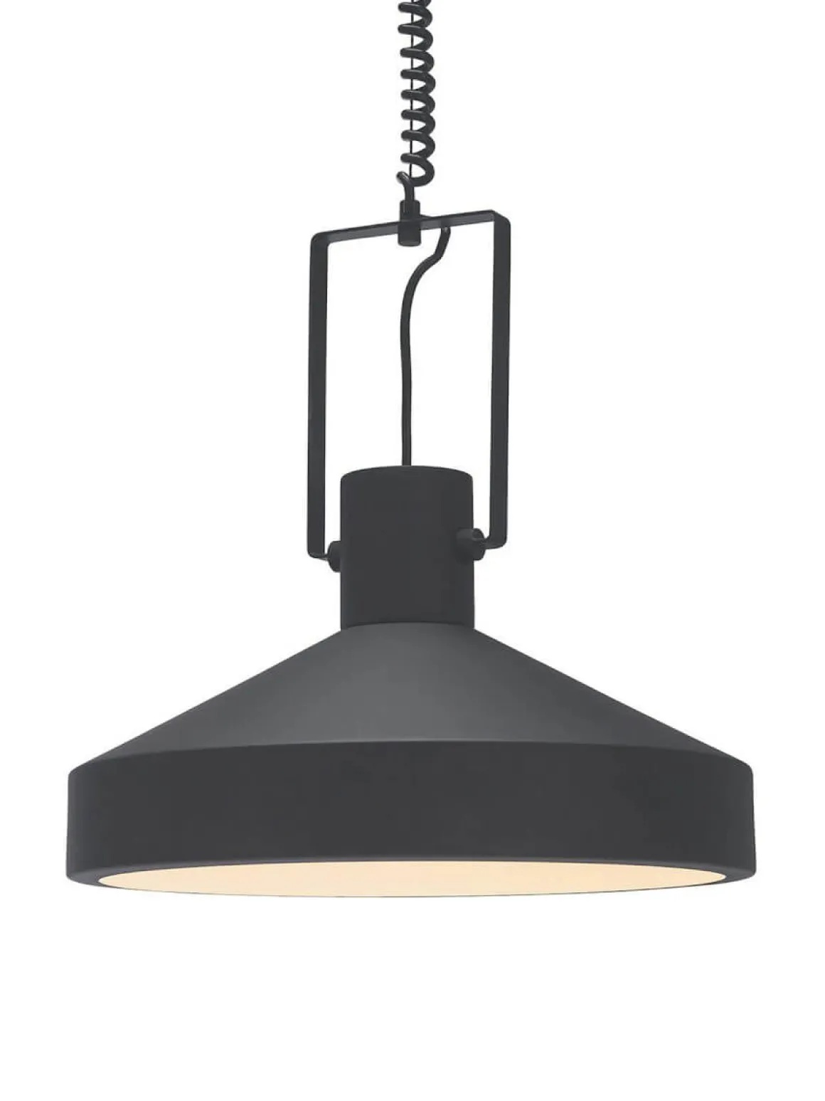 Vilken tuff taklampa Jojo i svart metall med läcker matt yta från PR-Home. Lampan levereras med justerbar sladd där det är lätt att själv välja höjden efter behov. Denna armatur installeras med en fast installation, det finns en utgång från takkoppen för att göra en smidig förlängning av kabel vid behov. Inne i armaturen sitter en diffuser som gör att du slipper se ljuskällan samtidigt som den ger ett jämt och behagligt sken. Ljuskälla och takkontakt köpes separat. Jojo finns i 2 storlekar och 2 färger här ser du den lilla 40cm i svart.