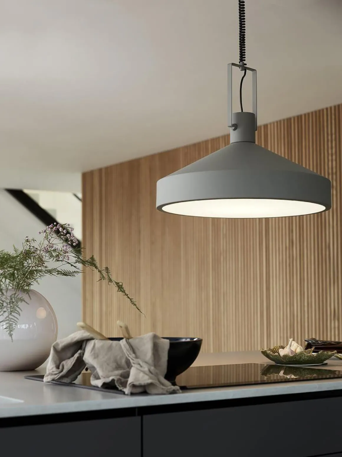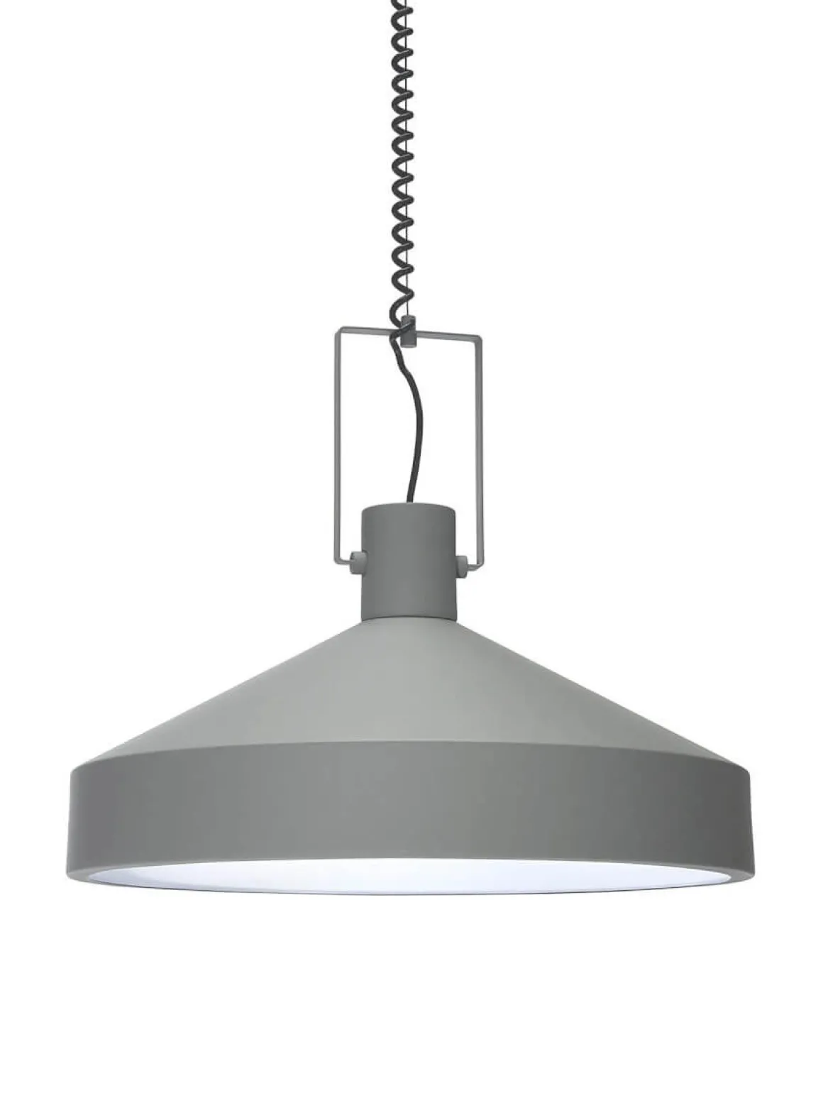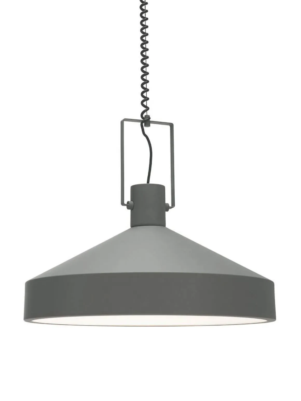 Vilken tuff taklampa Jojo i svart metall med läcker matt yta från PR-Home. Lampan levereras med justerbar sladd där det är lätt att själv välja höjden efter behov. Denna armatur installeras med en fast installation, det finns en utgång från takkoppen för att göra en smidig förlängning av kabel vid behov. Inne i armaturen sitter en diffuser som gör att du slipper se ljuskällan samtidigt som den ger ett jämt och behagligt sken. Ljuskälla och takkontakt köpes separat. Jojo finns i 2 storlekar och 2 färger här ser du den stora 55 cm i grått.