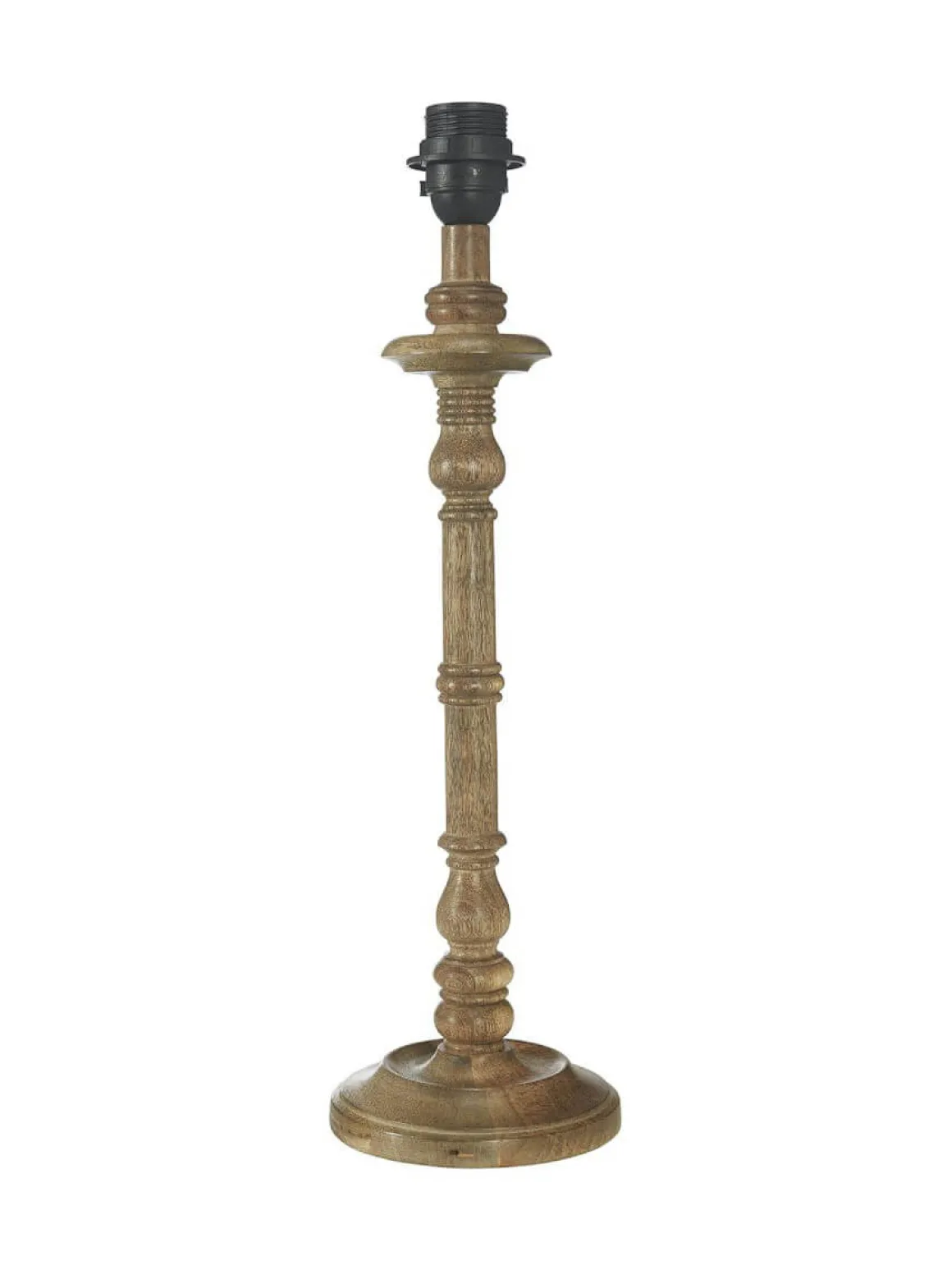 Underbara Joy 57 cm i svarvat mangoträ från PR-Home, en klassisk bordslampa där inspirationen är hämtad från gamla ljusstakar. Naturfärgad med sina vackra skiftningar gör att ingen lampfot blir exakt den andra lik. Kombinera gärna med en lampskärm upp till 20 cm i diam. Ljuskälla ingår ej.