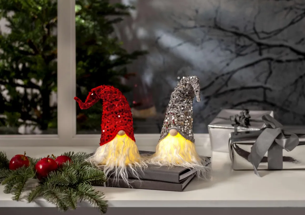 Meeen hur söt får man va? Super gullig liten batteridriven tomte med rödglittrig luva. Så enkel dekoration att pynta med i ditt hem och stuga för den där rätta julkänslan.