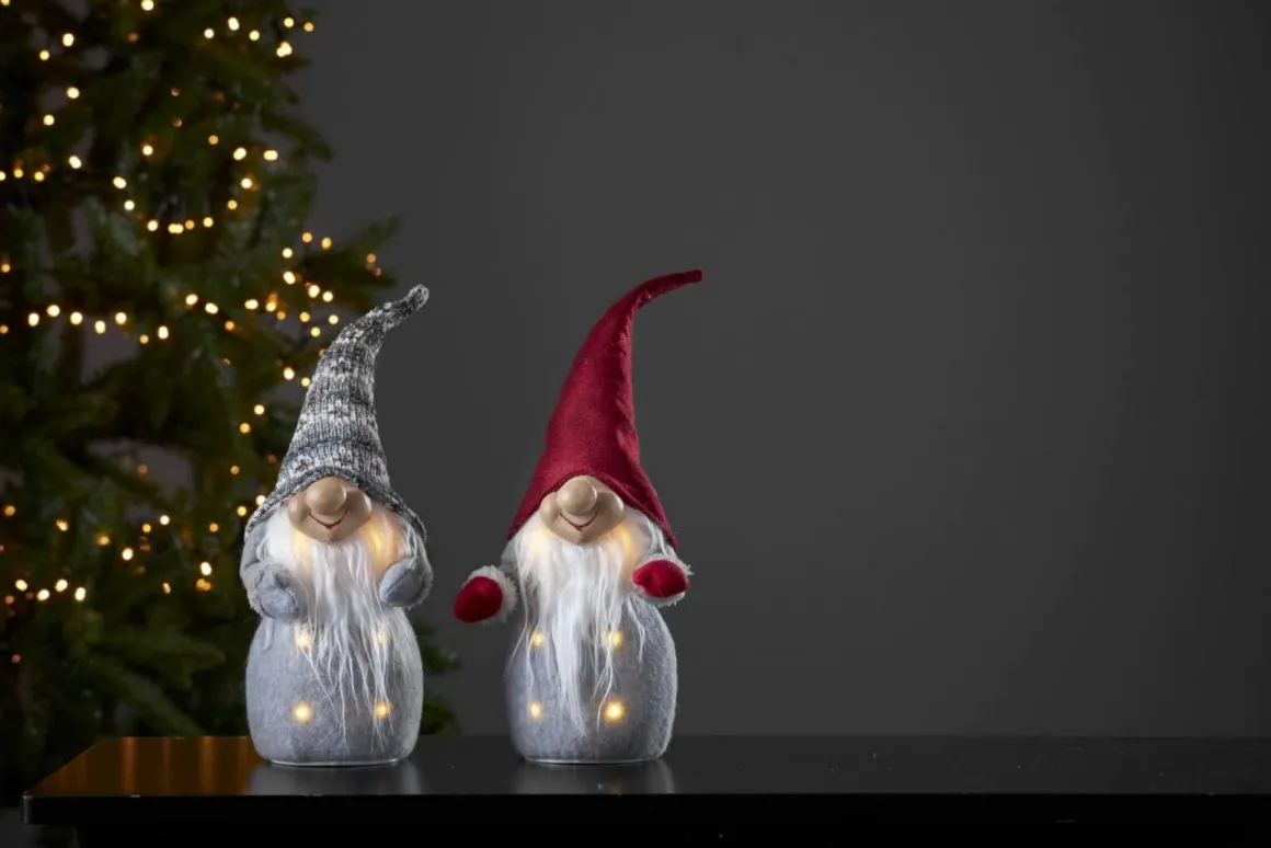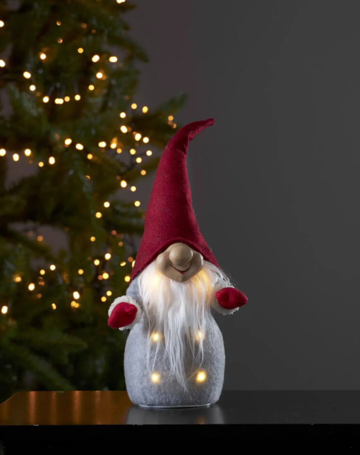 Sluta leta! Julens sötaste lilla grå/röda snögubbe eller gumma är här! Att hen dessutom lyser och har en inbyggd timer är ju bara perfekt.