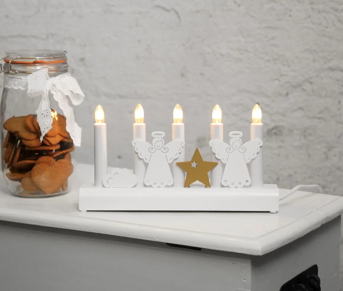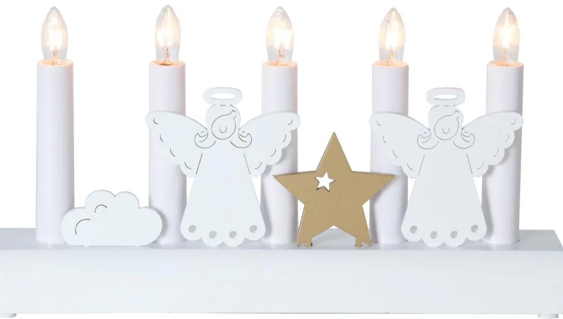 en söt liten träljusstake som passar i de små fönstren såväl som i de stora, 5 ljuskällor skapar härlig julstämning i ditt hem