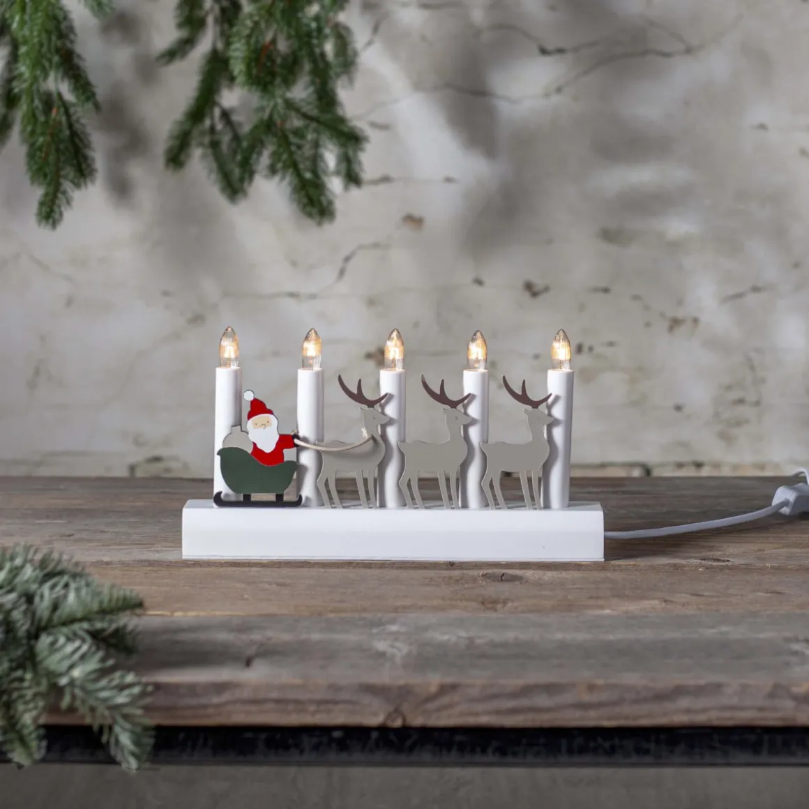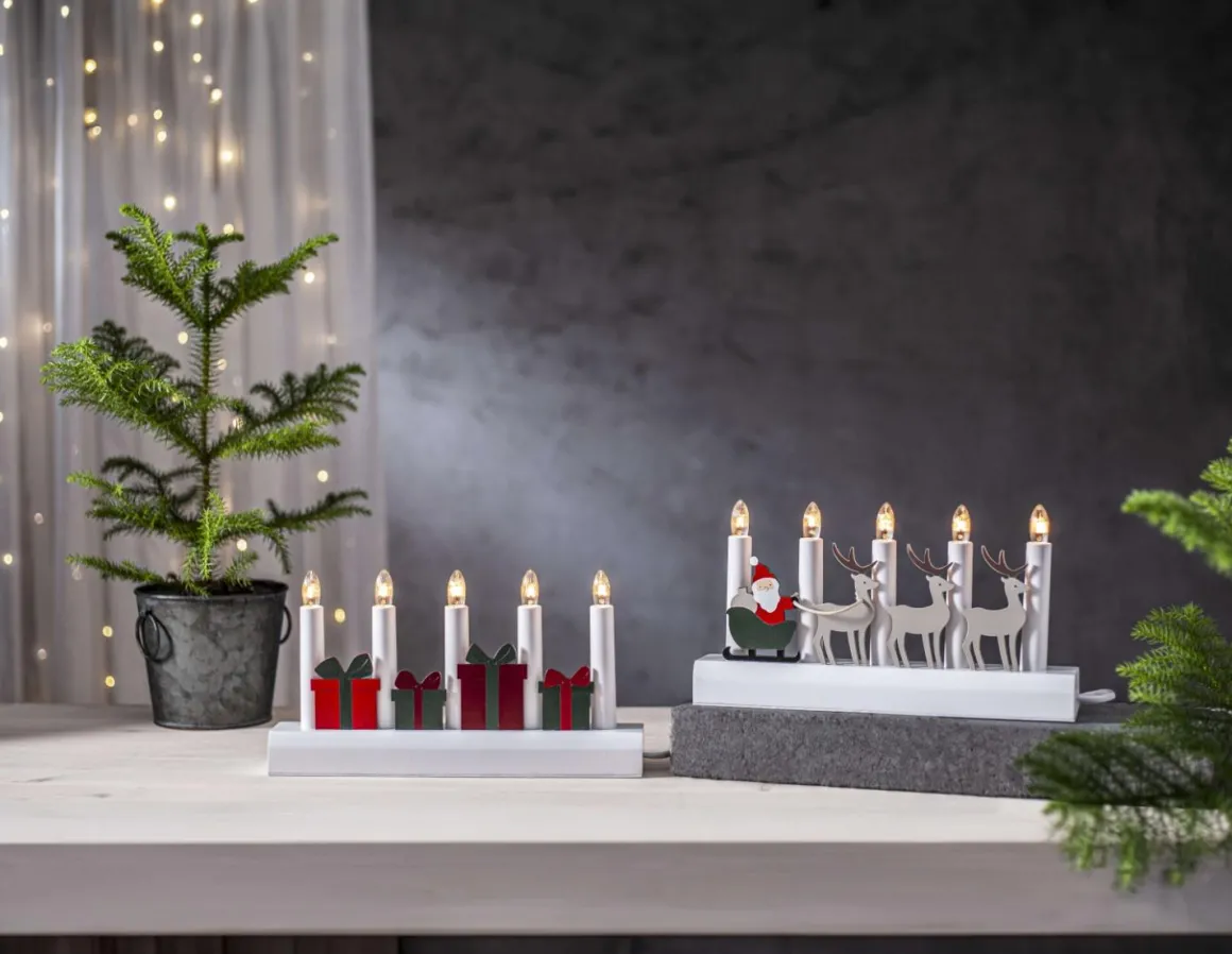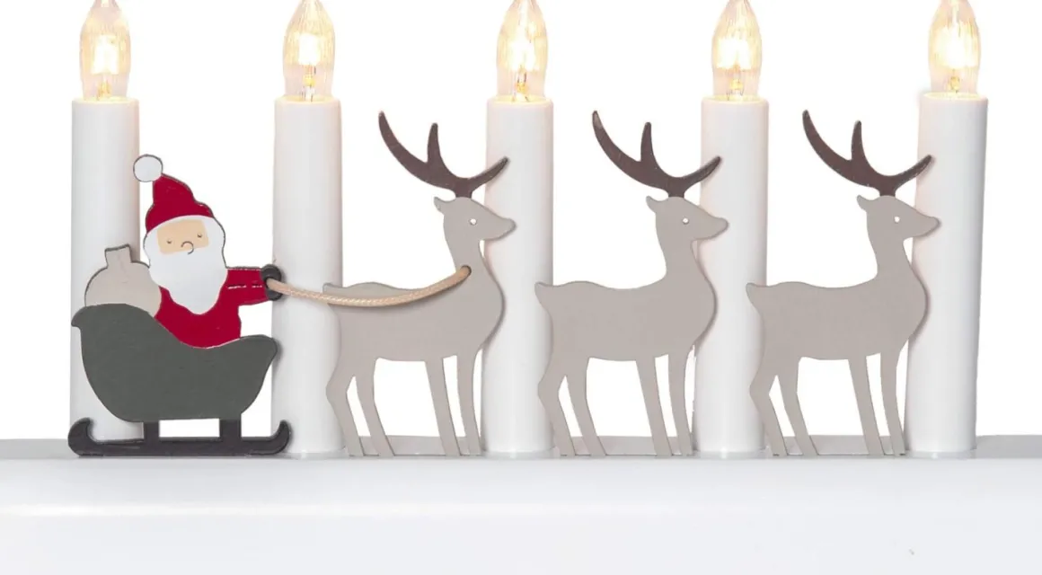 Skapa julstämning med denna vackra adventsljusstake från Star Trading. Dekorerad med tomten och hans renar i härliga julfärger, sprider den ett varmt ljus och lyser upp ditt hem. En klassisk ljusstake att plocka fram varje år när julen knackar på dörren. Ställ den i fönstret eller på en plats som behöver extra julkänsla. Dessutom är produkten FSC®-märkt, vilket säkerställer hållbarhet. Gör varje jul minnesvärd med denna fina ljusstake!