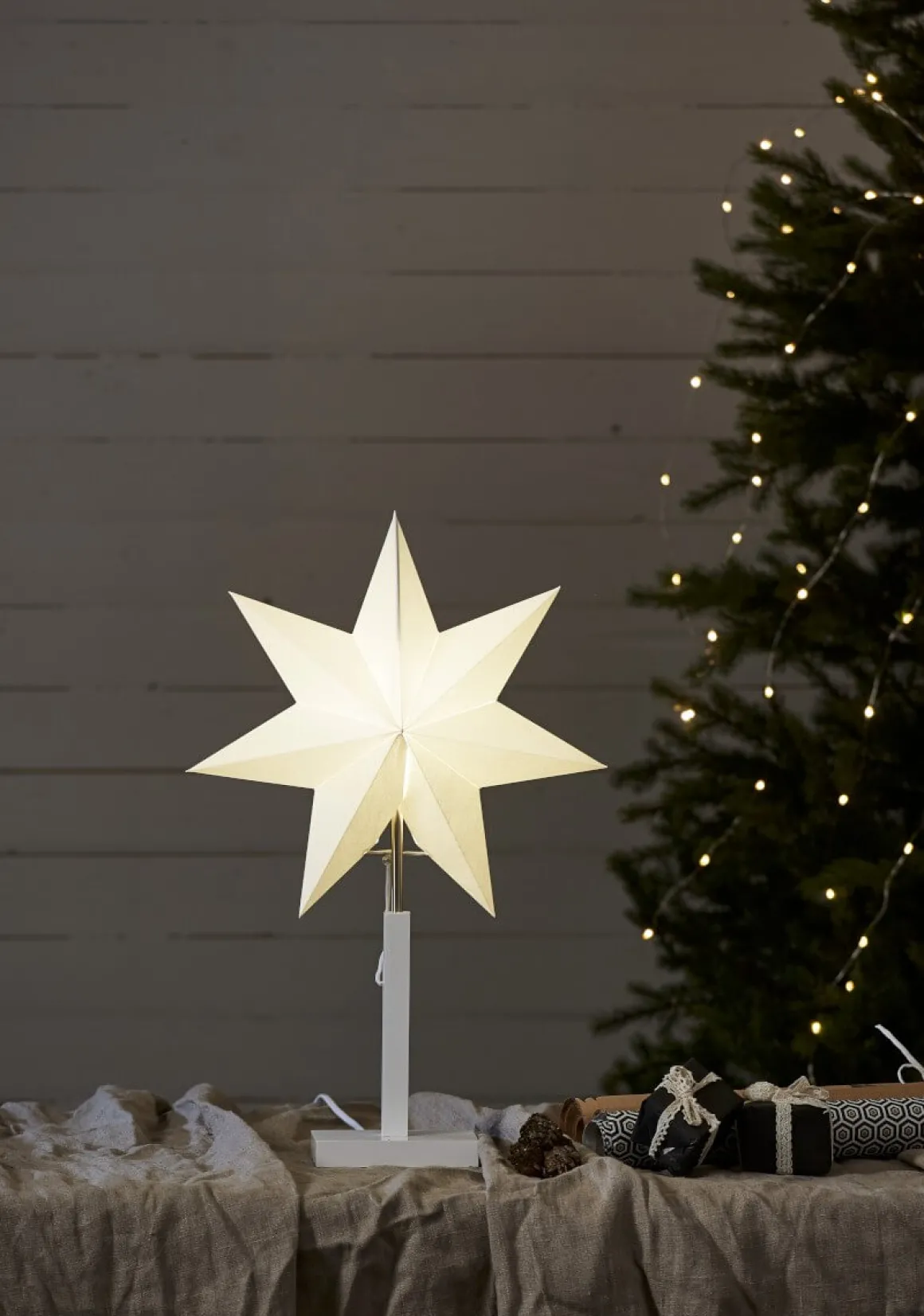 En klassiker i butiken i sitt originalutförande i ek, vi välkomnar nya stilrena Karo med öppna armar, en stilren julstjärna som gör sig i allas våra hem, finns i 3 storlekar här ser du minstingen i familjen.