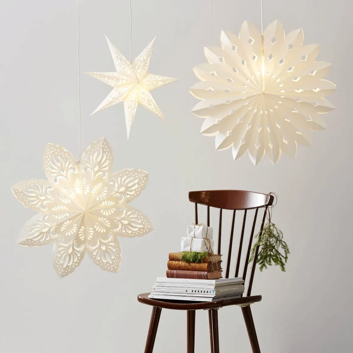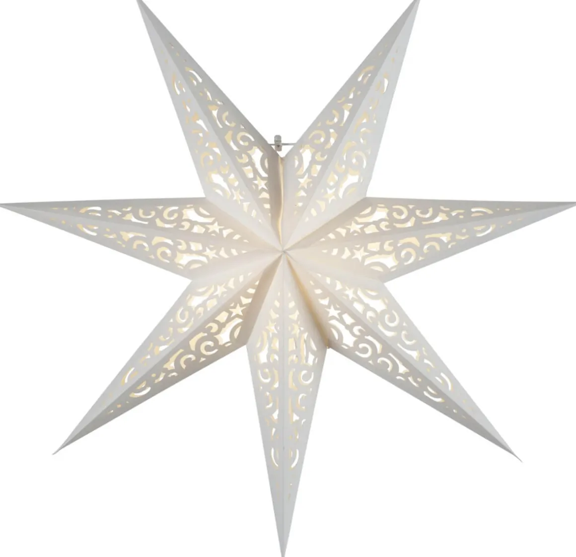 Vackra Lace från Star Trading är en lös vit pappstjärna med ett gnistrande vackert laserskuret mönster som släpper igenom ljuset på ett så vackert sätt! Lace levereras utan sladdställ.