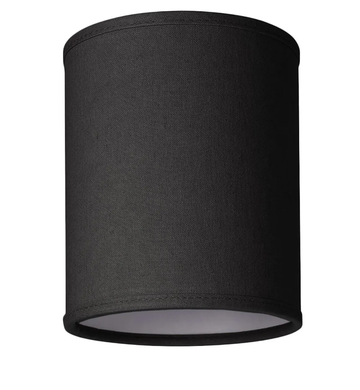 Svart Linne lampskärm från Cottex med en höjd på 18 cm bredd 15 cm med klotfäste.