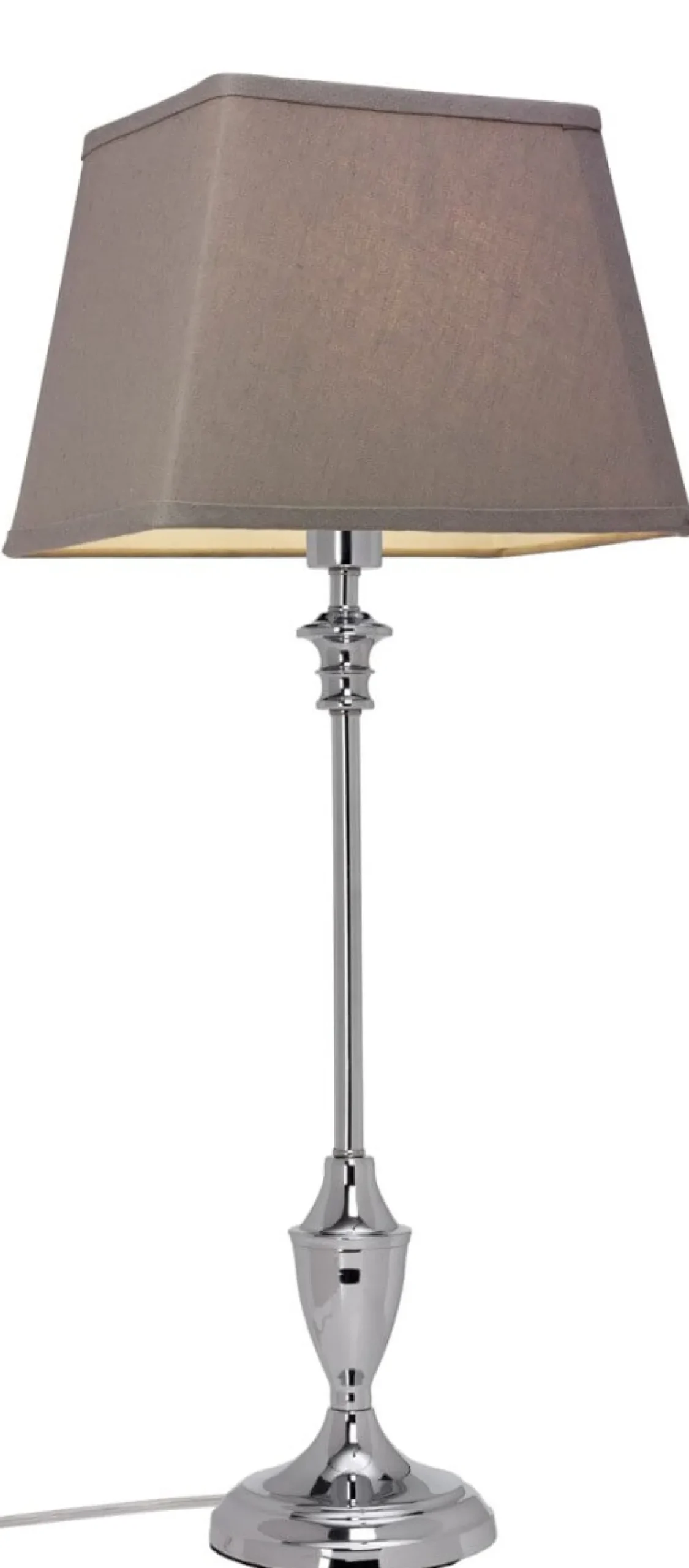 Grå rektangulär Linne lampskärm från Cottex med en höjd på 18 cm bredd uppe 16 cm, bredd nere 23,5 cm med Ringfäste för E27 och E14..