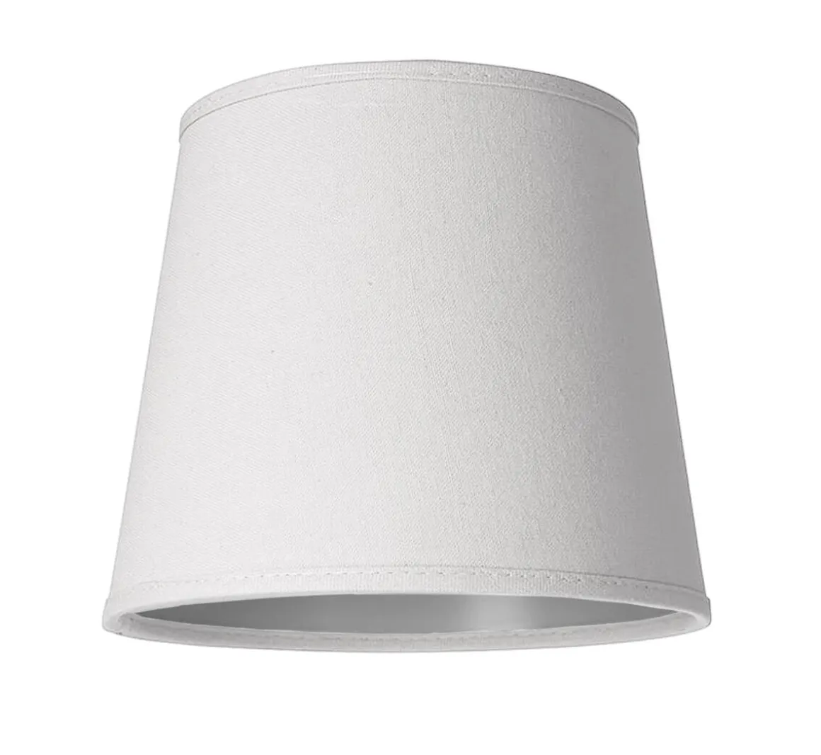 Vit Linne lampskärm från Cottex med en höjd på 17 cm bredd uppe 15 cm, bredd nere 20 cm med svängbart ringfäste för både E27 och E14.