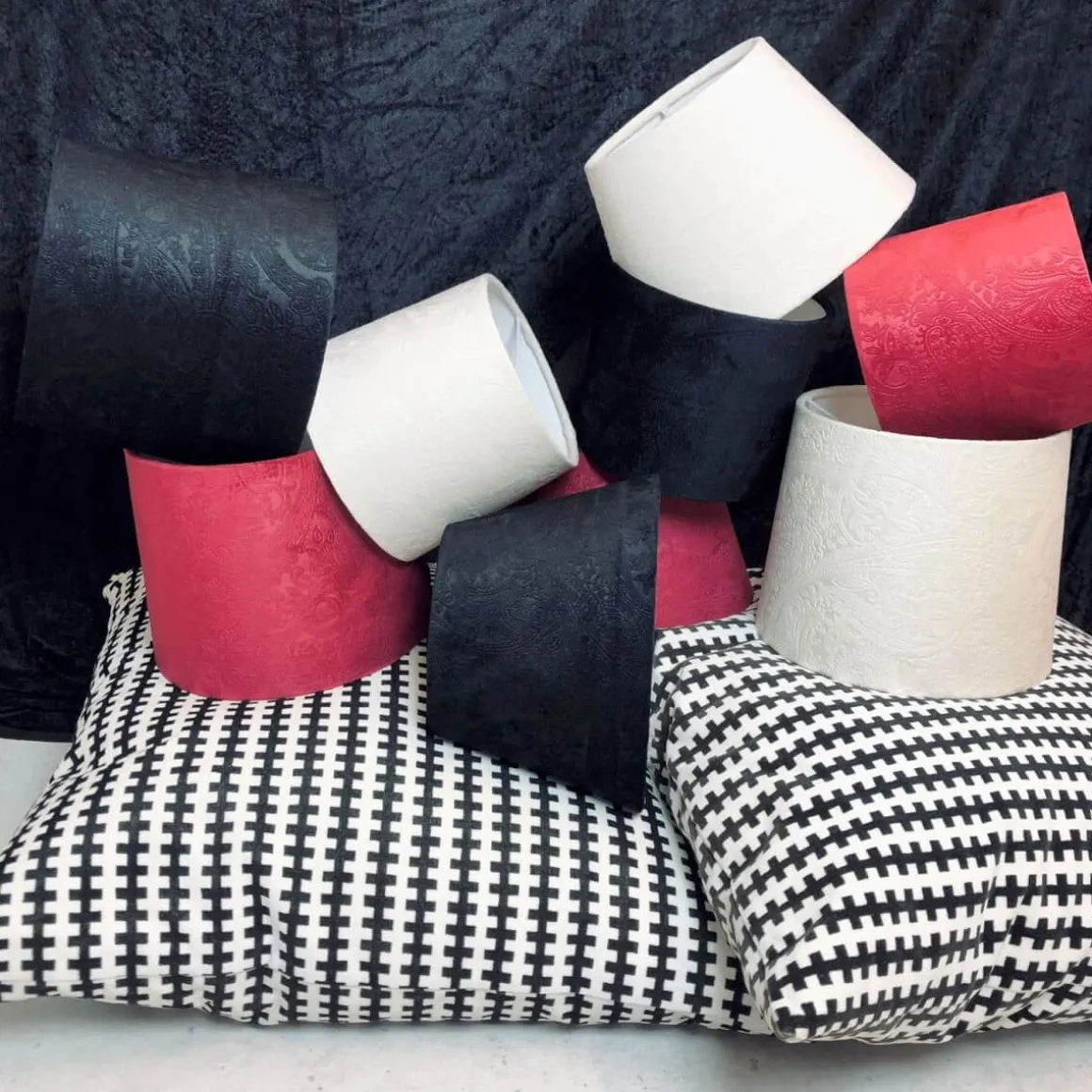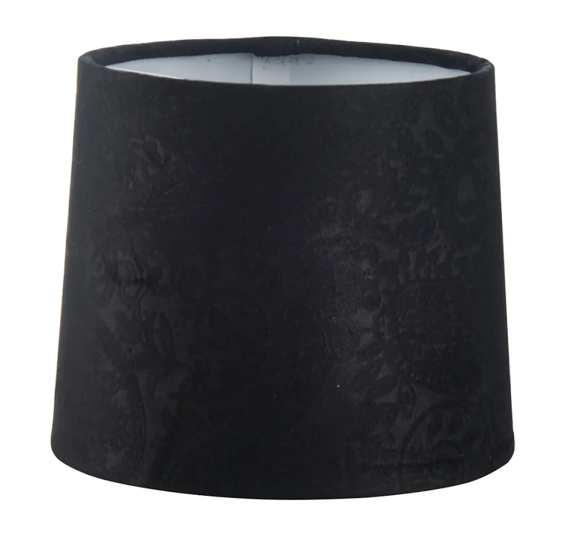 Läcker sammetsskärm från Oriva med ett härligt dovt mönster, skärmen finns i flera storlekar och färger. Här ser du Paisley 16 cm i Svart.