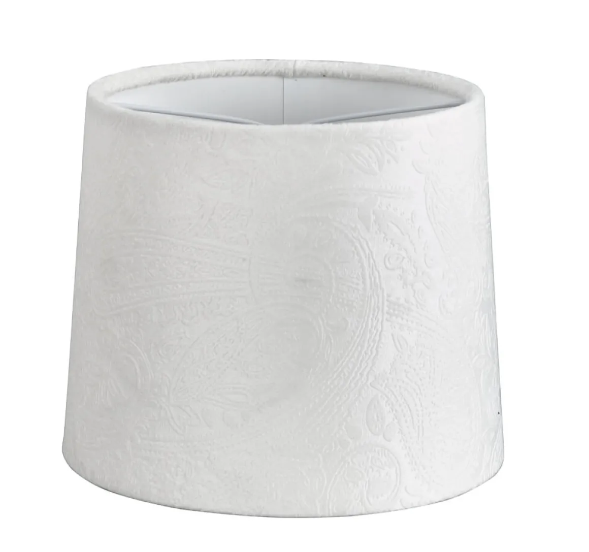 Läcker sammetsskärm från Oriva med ett härligt dovt mönster, skärmen finns i flera storlekar och färger. Här ser du Paisley 16 cm i Vitt.