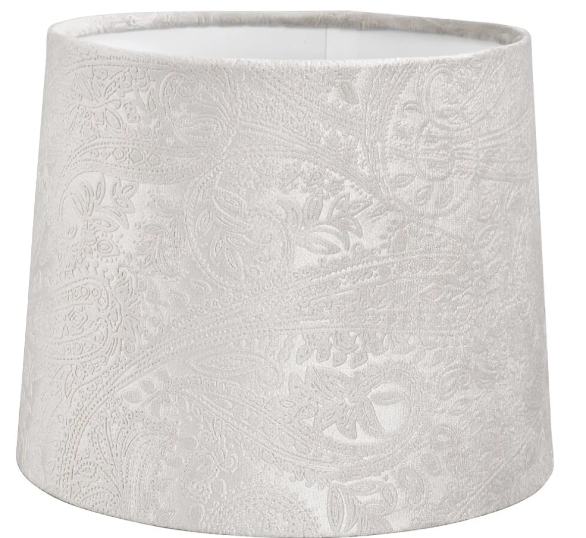 Läcker sammetsskärm från Oriva med ett härligt dovt mönster, skärmen finns i flera storlekar och färger. Här ser du Paisley 20 cm i grått.