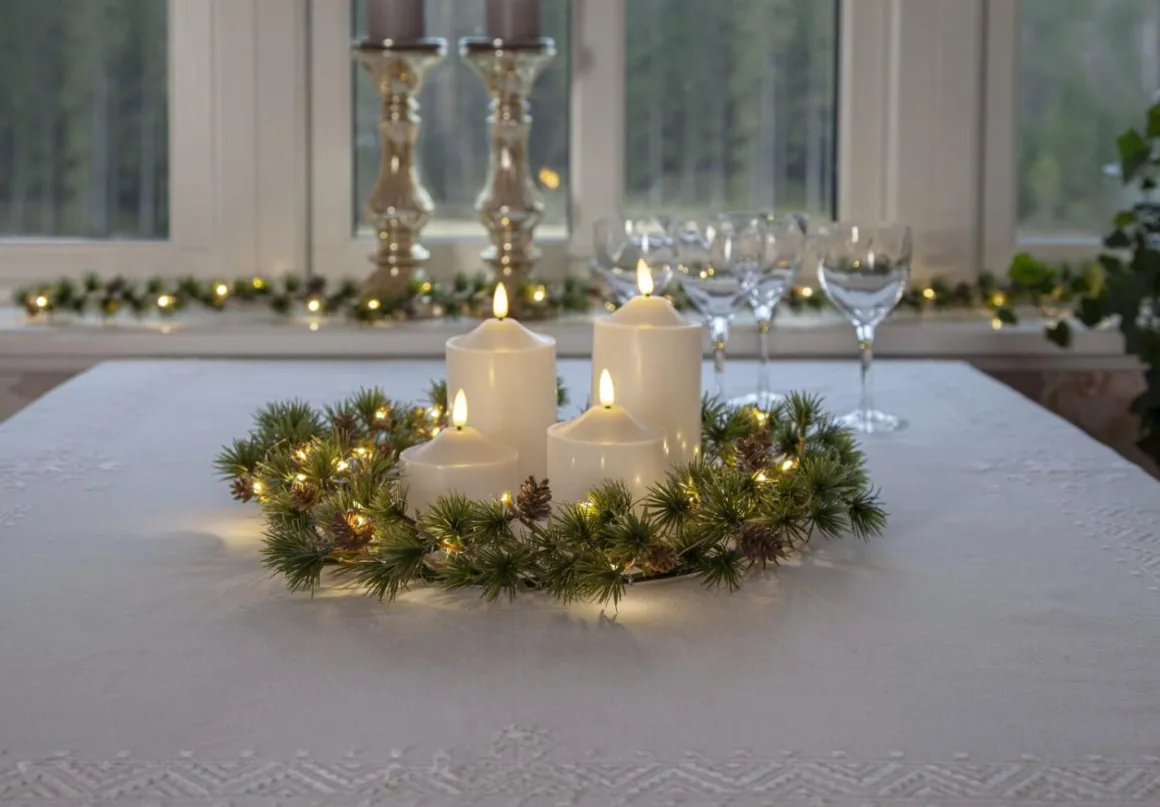 Larix girlang från Star Trading är 140cm lång och har lärkträdsliknande barr och små kottar. Dessa är gjorda i PE material som är ett bra miljöval. Med 20 stycken små varmvita ljuspunkter går den att använda både som en girlang utomhus eller som en dekoration inomhus. Till exempel vid julbuffen. Larix drivs av 3 AA batterier och har även timerfunktion så du enkelt kan styra när du vill att den ska lysa. Batterier ingår ej.