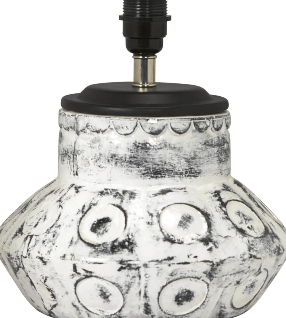Denna lampfot i keramik Från välkända PR-Home ger en levande känsla i en inredning med strama detaljer.