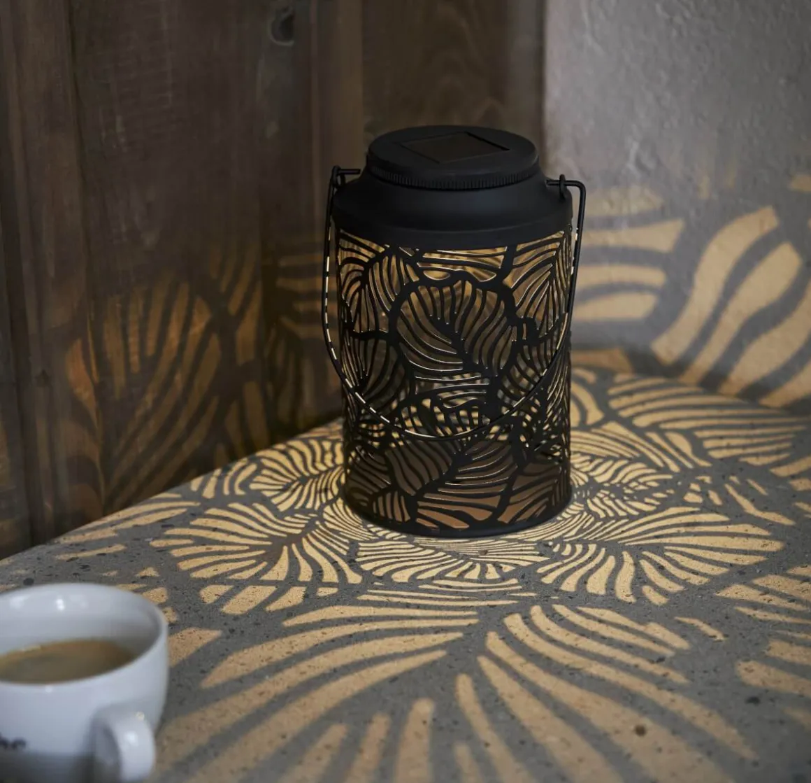 Kolla in Star Tradings fina lykta Leafy! En solcellsbelysning gjord i svart metall. Det varmvita ljuset lyser vackert genom det stansade lövmönstret och bildar en vacker ljusbild runt om sig. Lyktan är fin att placerapå din uteplats, hängande i ett träd eller på en balkong. Se till att placera solcellsdekorationen där solen kan nå solcellspanelen under dagen för att få ordentligt med laddning till det medföljande batteriet.