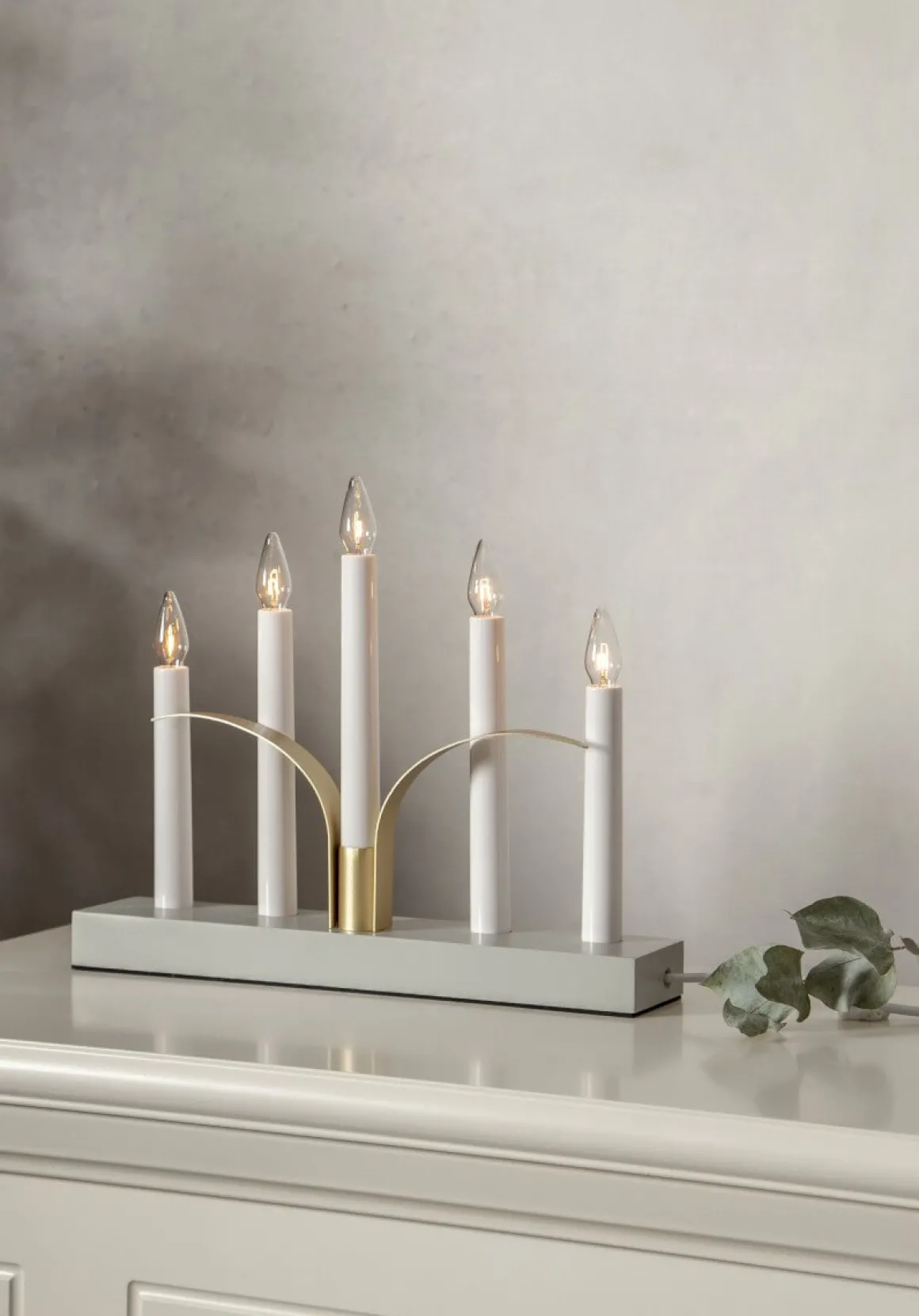 Stämningsfull grå adventsljusstake från Star Trading tillverkad i trä med mässingsfärgad dekoration i mitten. Lilja är liten och nätt och blir därför lättplacerad både i mindre fönster eller på en skänk. Julen blir något alldeles extra med stämningsfulla Lilja som dekoration.