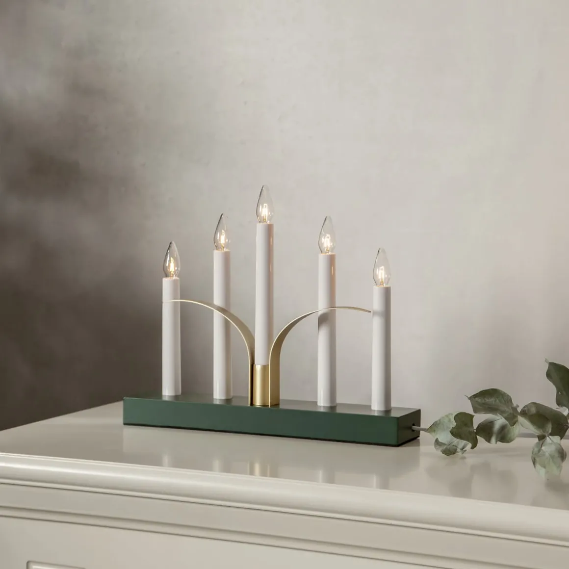 Stämningsfull grön adventsljusstake från Star Trading tillverkad i trä med mässingsfärgad dekoration i mitten. Lilja är liten och nätt och blir därför lättplacerad både i mindre fönster eller på en skänk. Julen blir något alldeles extra med stämningsfulla Lilja som dekoration.