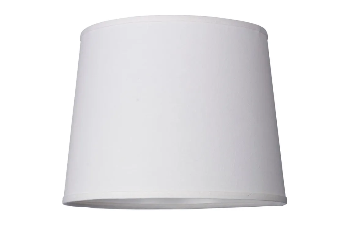 Vit konformad lampskärm i linne från Cottex med en höjd på 23cm, bredd upptill 25 cm, bredd nedtill 30cm. Med ringfäste för E27 och E14.