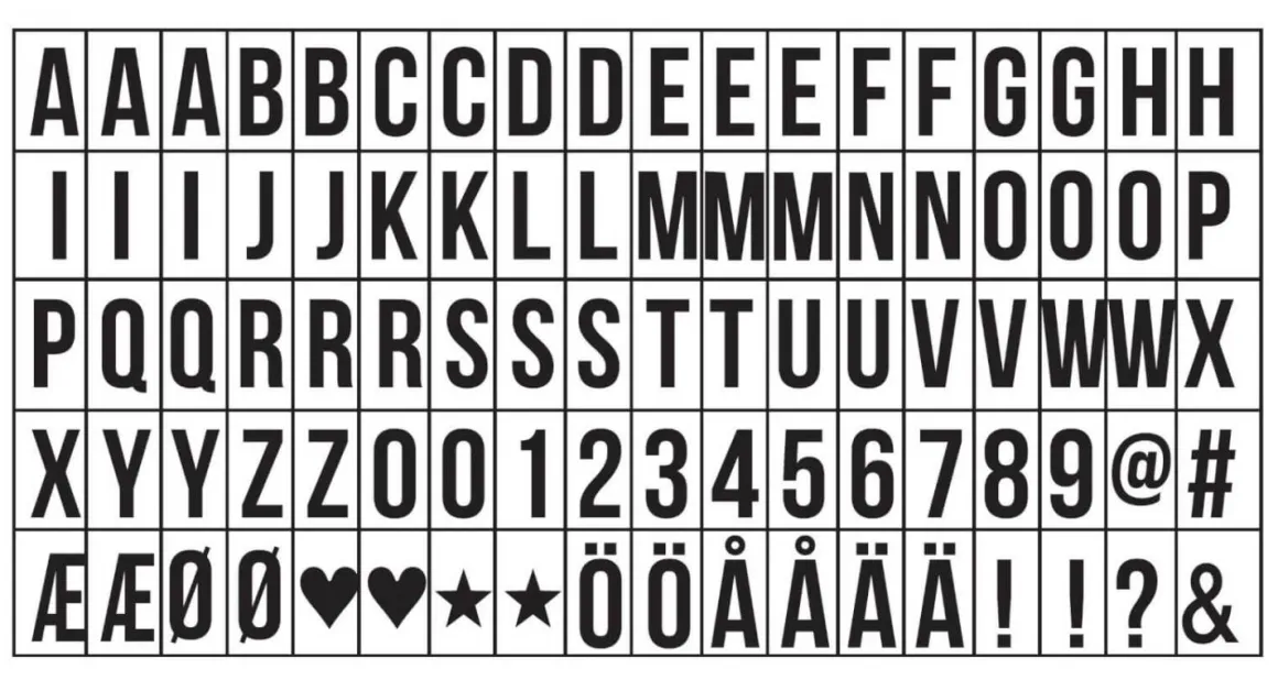 90 st extra bokstäver till PR Home:s LED A5/A4 ljuslåda (A5 art.nr. 120122, A4 art.nr.120120 eller A4 med timer art.nr. 120130).