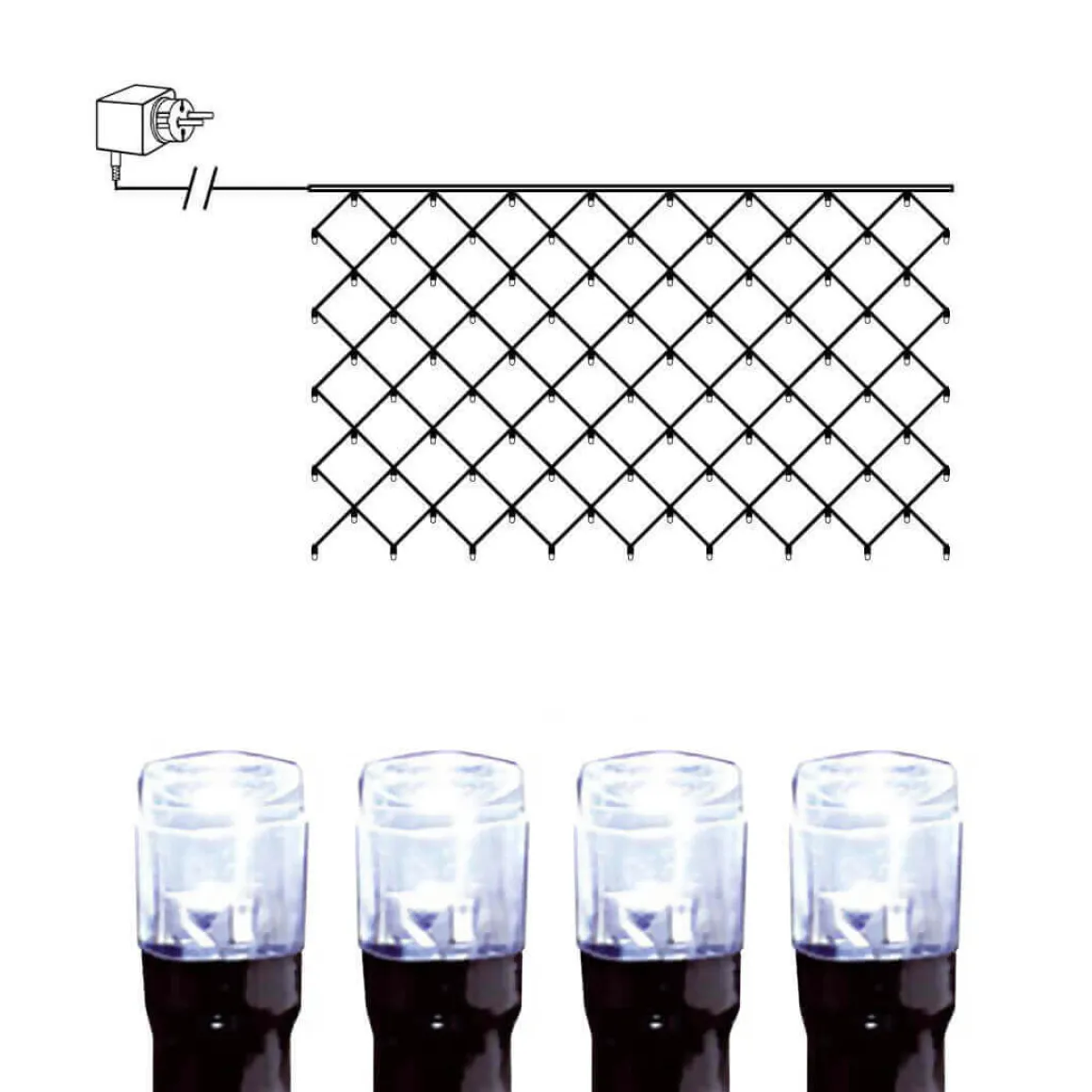 Nät med svart kabel och 90 kallvita LED-ljuskällor. Serie LED är perfekt att dekorera med utomhus.