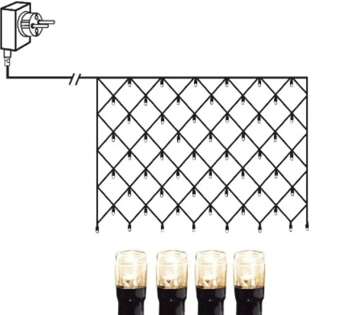 Nät med svart kabel och 160 varmvita LED-ljuskällor. Serie Mirco LED är perfekt att dekorera med utomhus.