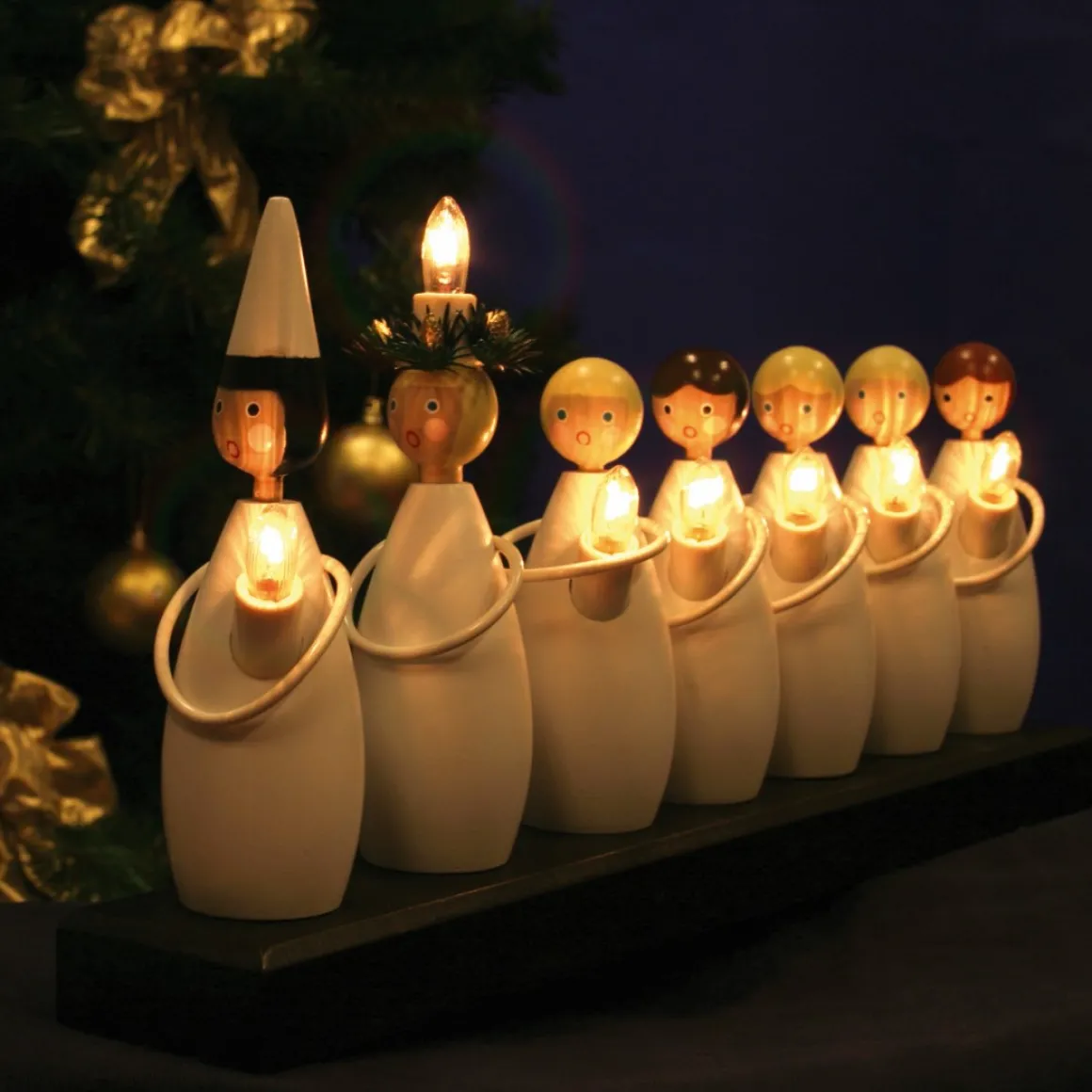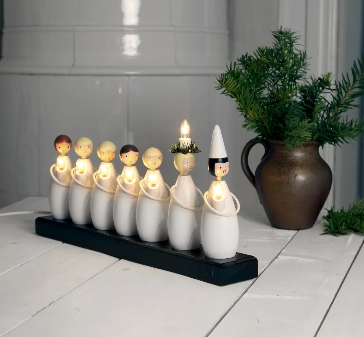 Luciatåg en träljustake som de flesta känner igen Lucian, stjärngossen och de 5 tärnorna lyser upp vackert i vintermörkret