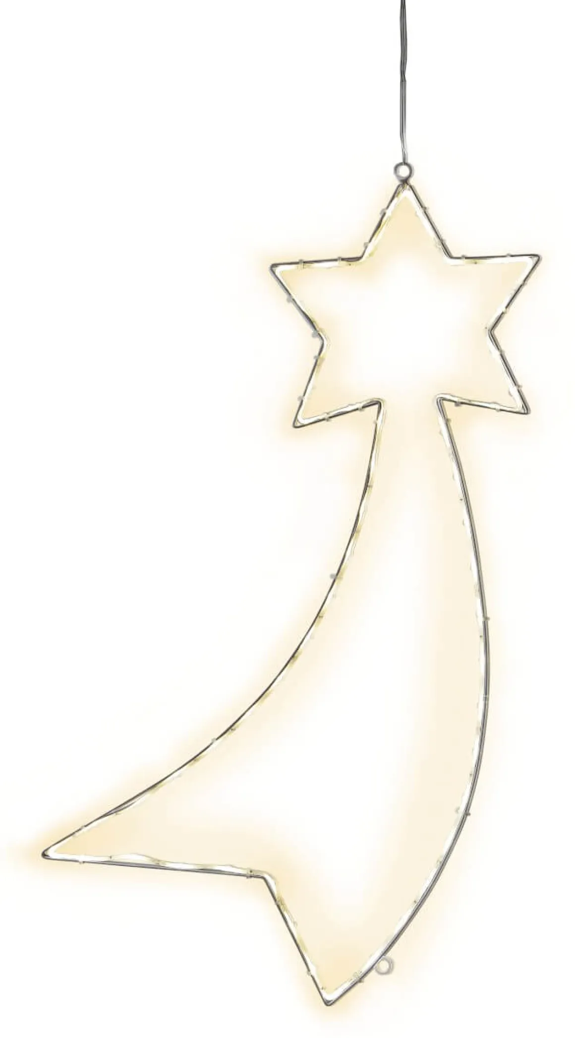 Vacker siluett komet för utomhusbruk eller inomhus om du vill det ;-). Kometen har 54 små LED-ljuskällor med varmvitt sken. En underbar juldekoration att ha hängandes i trädgården.