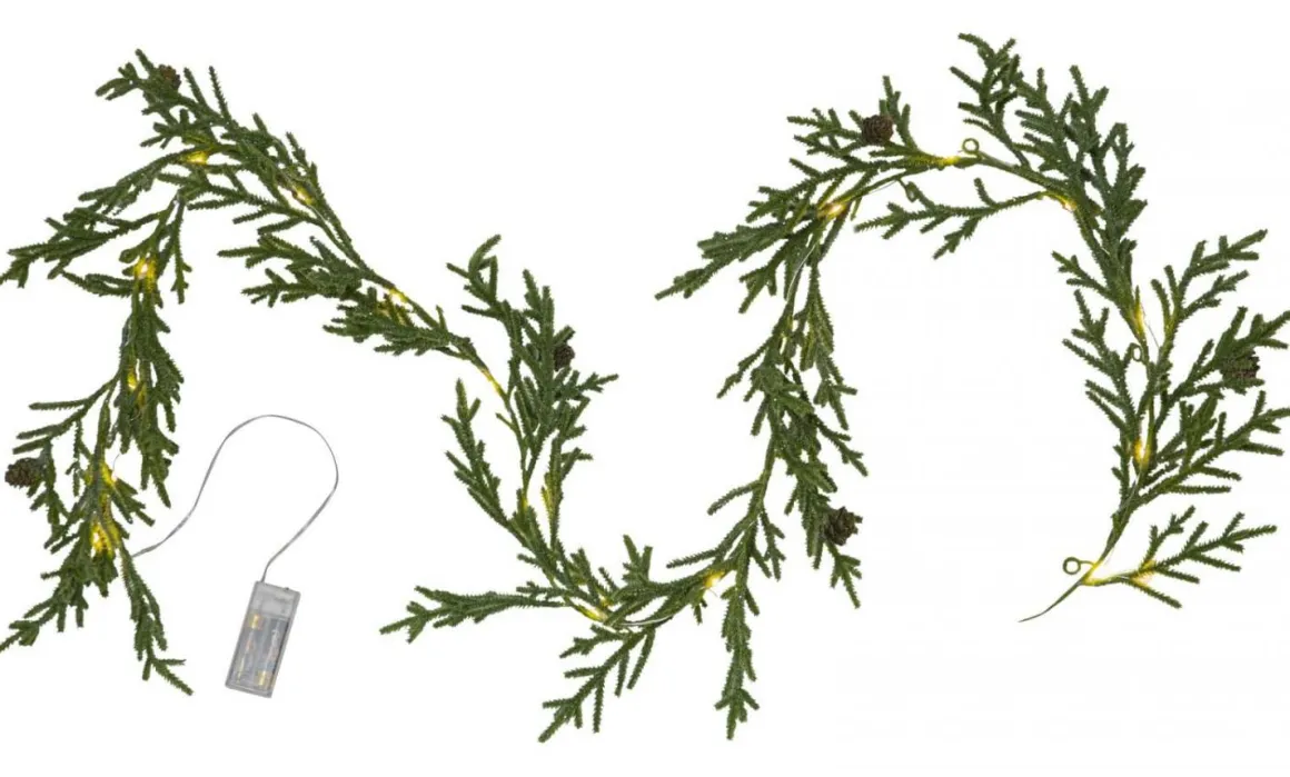 Härlig liten batteridriven girlang med små kottar och lite lagom bling bling. Lummer drivs med batteri så att finna en plats till underverket är extra enkelt.