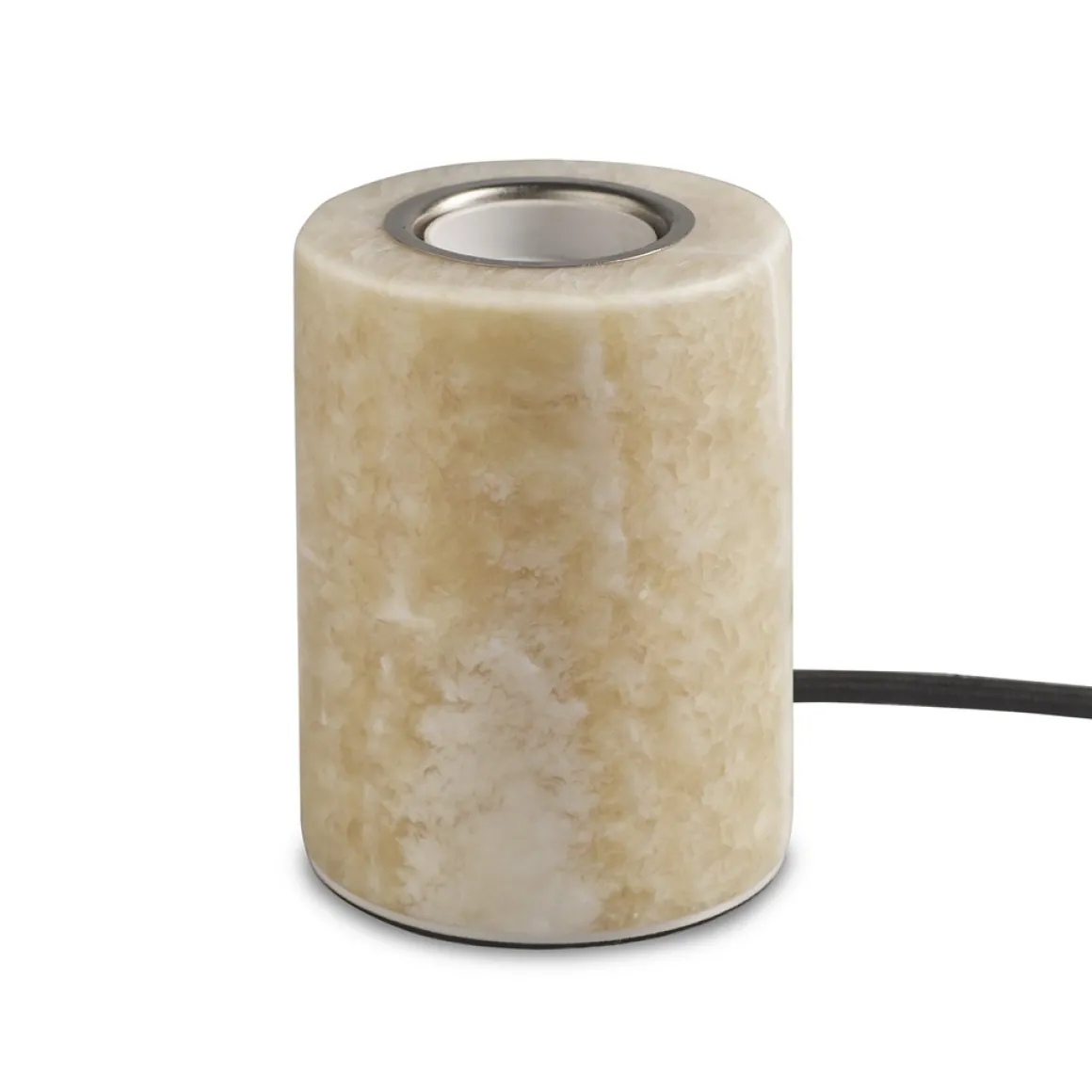 Underbart vacker beige lysande marmorfot, kombinera med en ljuskälla eller låt foten lysa för sig själv. Komplett med 1,8 meter textilkabel.