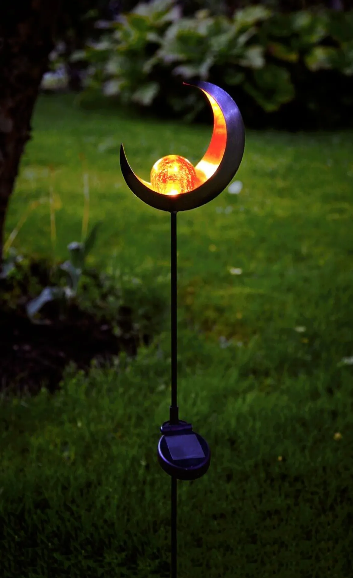 Så vacker månskära att dekorera med i trädgården! Att den dessutom lyser och drivs av solens vackra strålar är bara en stor bonus.