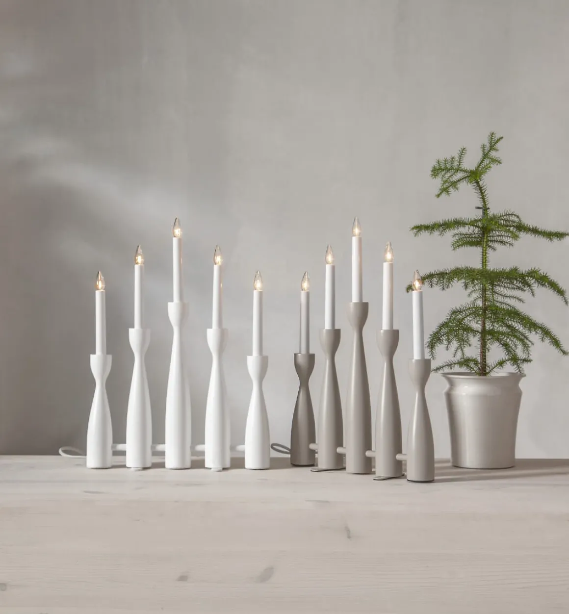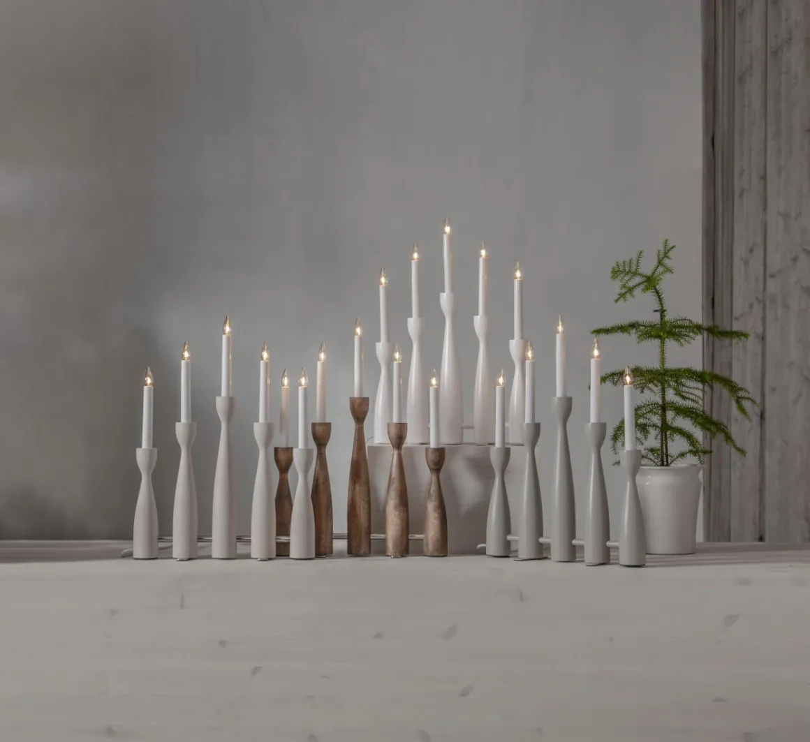 Midja 2.0! Ja verkligen! Jag vet inte om du minns den gamla klassikern midja med raka käglor? Här är i alla fall den moderna uppgraderade versionen. Helt utan förvarning och så fantastiskt vacker. Denna ljusstaken får mig att längta till julen redan nu (när det i skrivandets stund är 10 månader kvar). Midja 2.0 görs i 4 olika dova färger, här ser du henne i beige.