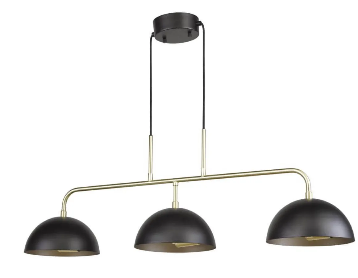 Oj oj oj vilken underbar nyhet till Taklampa från Oriva. Den klassiska Biljardlampan har fått en helt ny design. 3 svarta kupor med 2 lampor i varje ger dig ordentligt med ljus om du så skulle behöva. Svart och mässing i en helt perfekt kombination. Självklart med krokupphäng för en snabb och smidig installation.