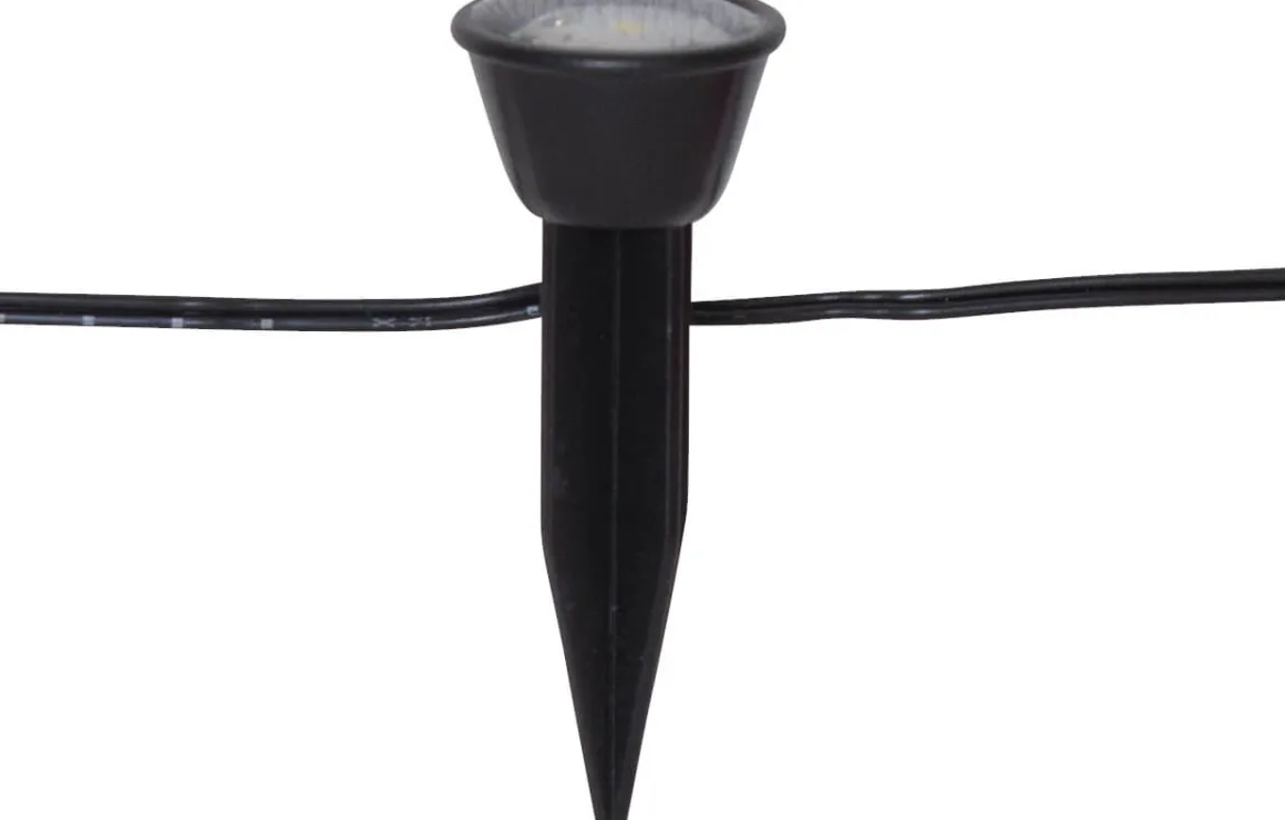 Solcellsslinga från Star Trading med 8 supersöta mini spotlights med 30 cm kabel emellan. Dessa spotlights lyser upp i din trädgård eller på terrassen med 25 lumen. De är diskreta och lätta att placera i en rabattkant eller som en enklare gångbelysning. Själva paneldelen sitter med 170 cm kabel från den sista spotlighten detta gör det enkelt för dig att placera panelen i direkt solljus vilket är nödvändigt för att ladda batteriet som medföljer. Det går således bra att ha själva slingan i skuggan så länge själva panelen står i solen.