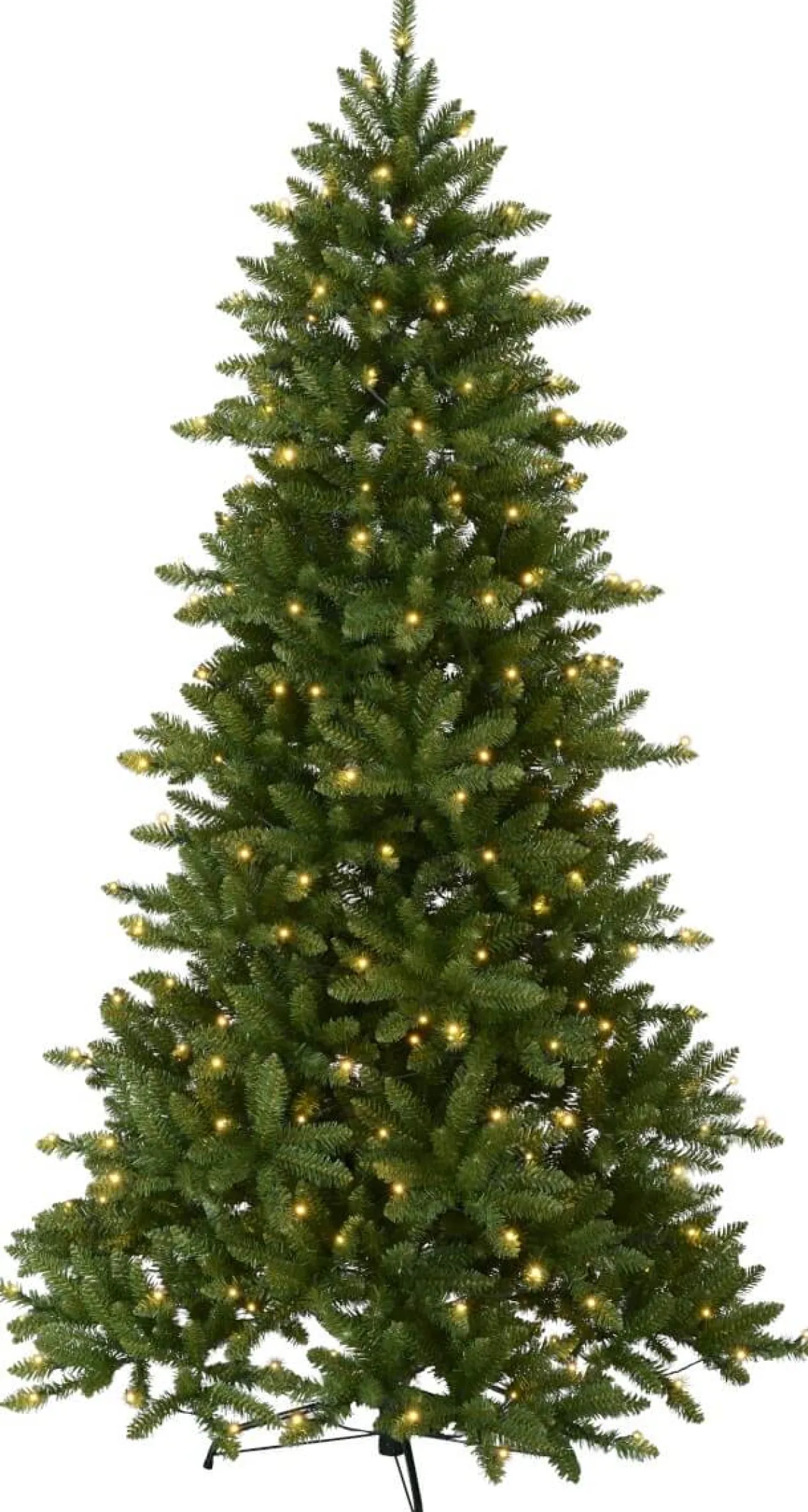Julgran från Star Trading med LED-belysning för inomhus eller utomhusbruk. Granen har 280 stycken LED-ljuskällor som avger ett härligt varmvitt sken. Grenarna är permanent fastsatta vid stammen i gångjärn och fälls ned när man monterar granen.