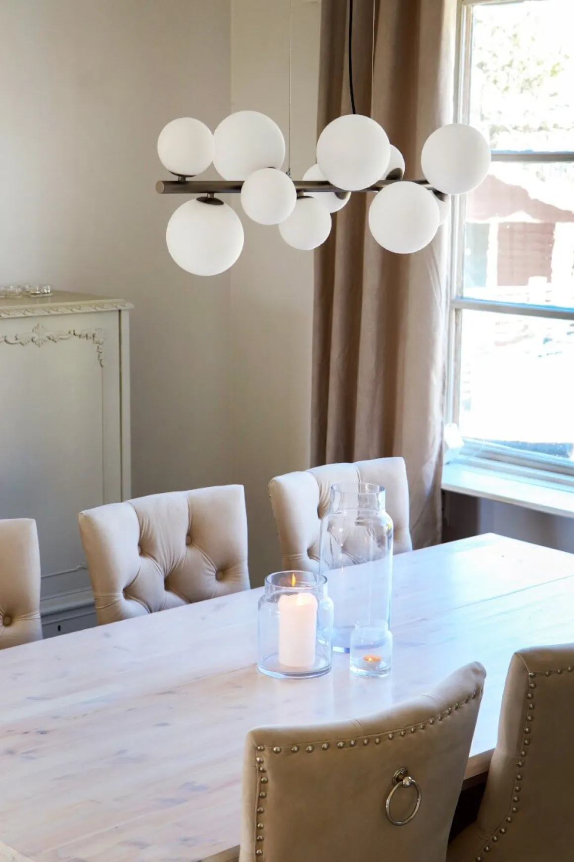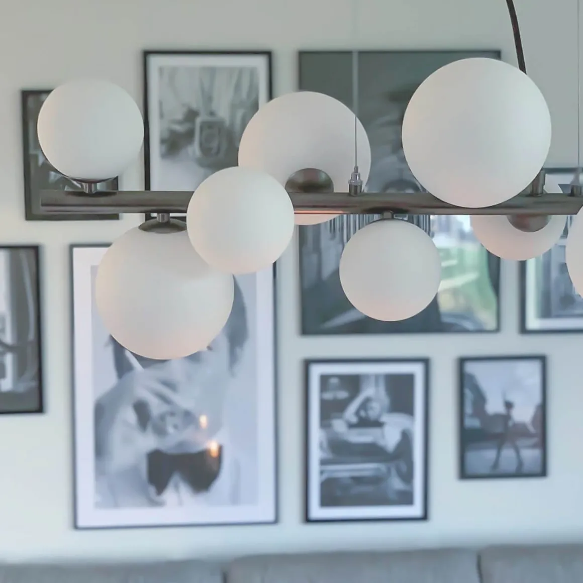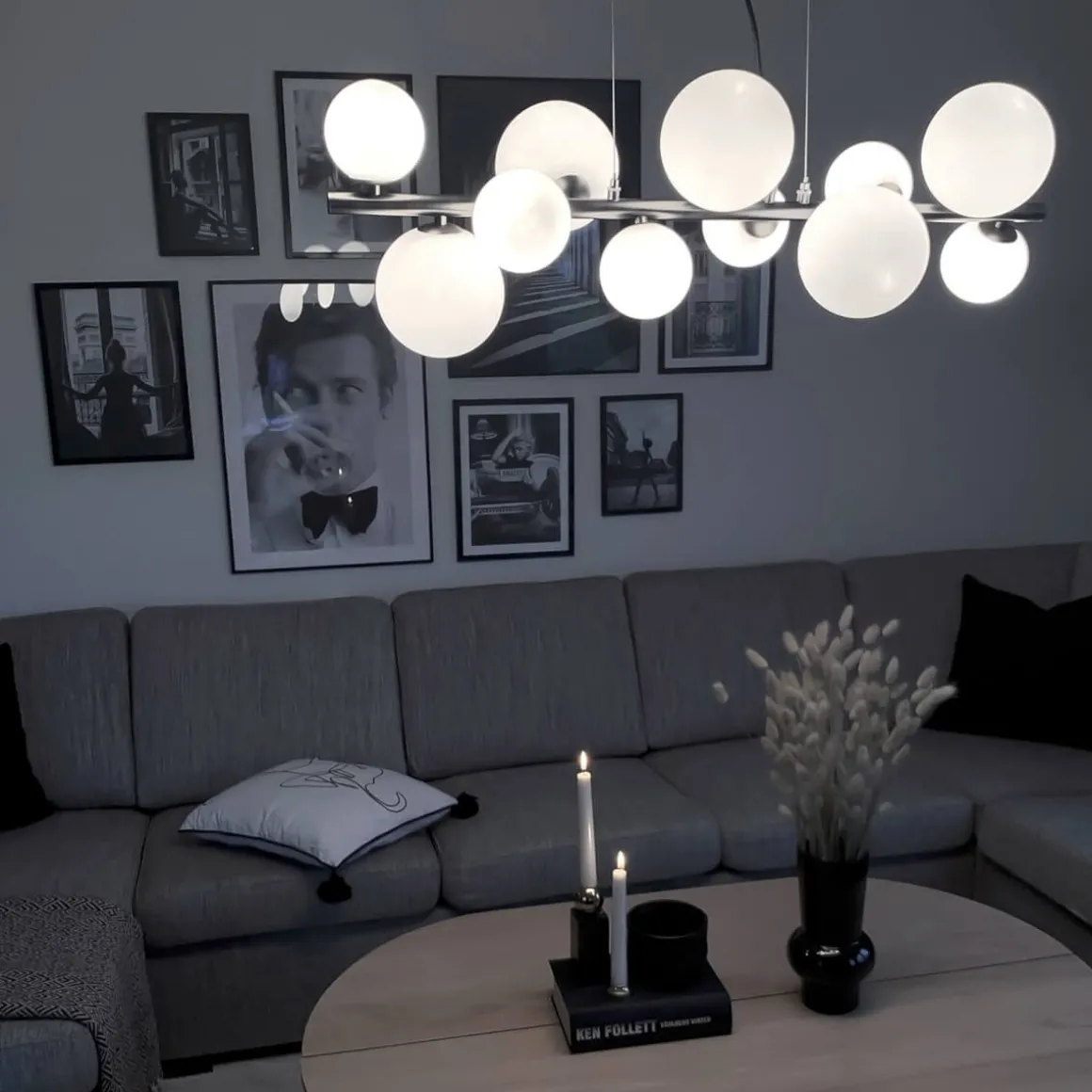 En av mina absoluta favoritlampserier från Aneta belysning är denna coolingen Molekyl här som Taklampa med hela 11 ljuskällor. Bara titta på den! stilren och enkel med en kul design och bara precis sådär rätt. Stomme i grått med opalvita kupor.