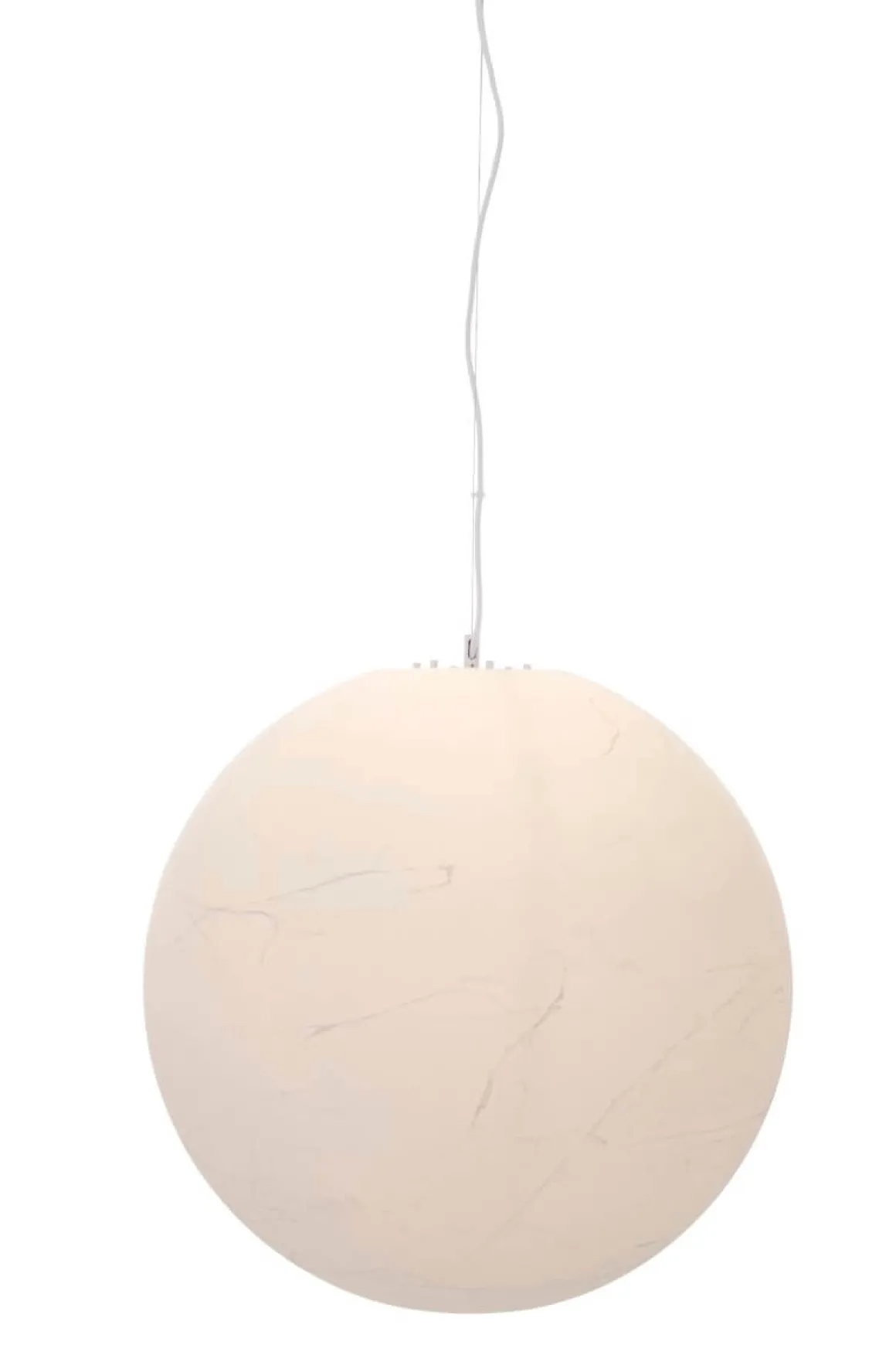 Kul bordslampa med marmorerat mönster som ger ett mjukt och behagligt sken. Här ser du näst största Moon taklampa 60 centimeter. Självklart med krokupphäng för en snabb och smidig installation.
