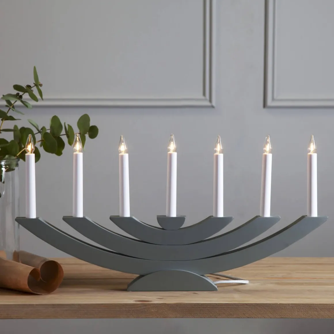 Härliga Navida, en ljusstake som verkligen får synas och ta plats. Ett traditionellt formspråk i ny modern tappning. Här ser du Navida i dimgrå/mist grey.