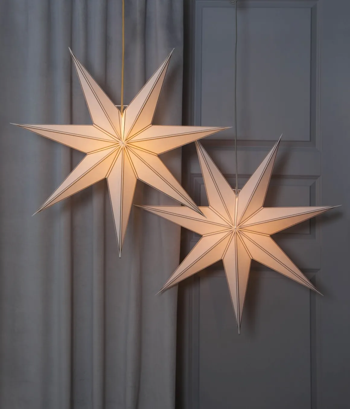Såååå vacker stjärna! En Stilren stjärna med ett rakt och tydligt mönster, levereras med 3,5 meter guldfärgad textilsladd och blir på så vis lättplacerad i de flesta hem